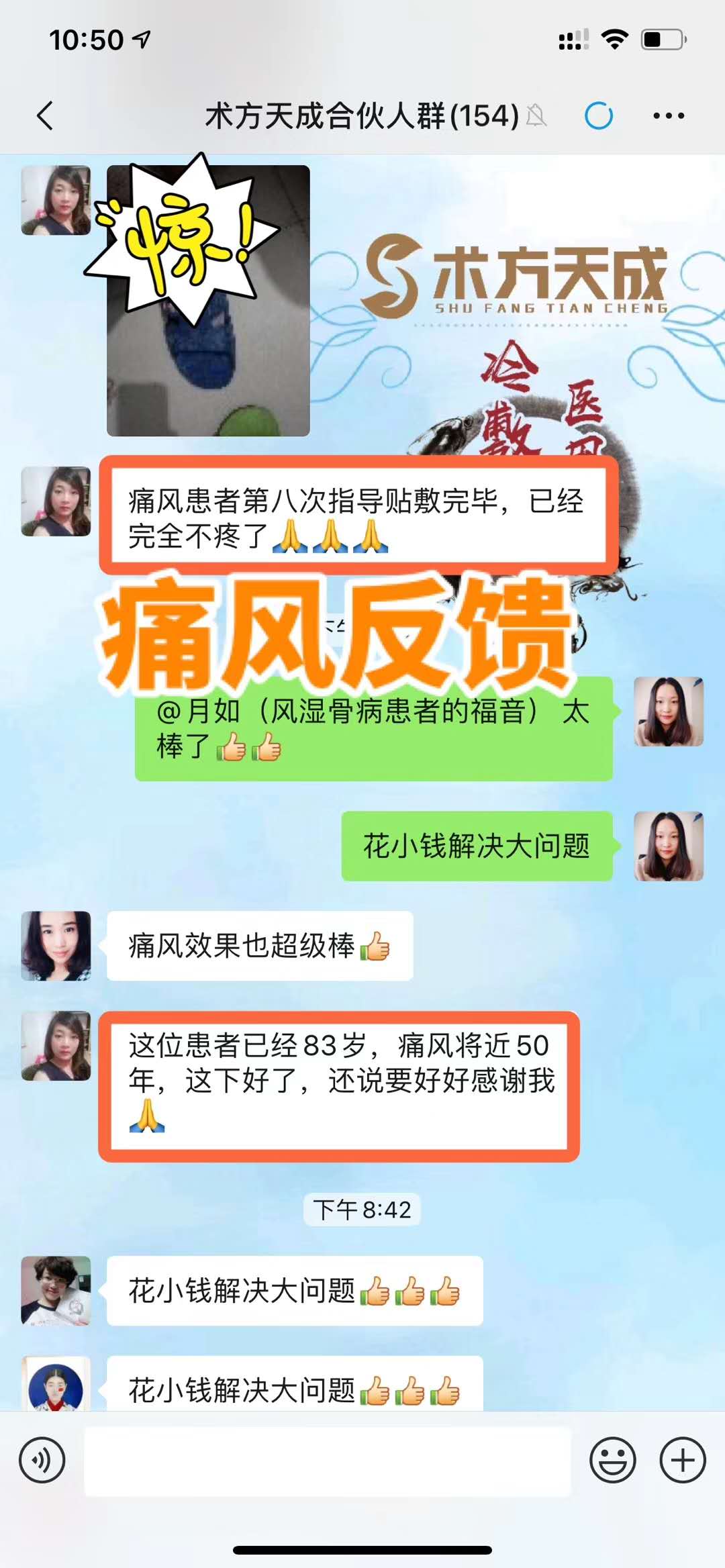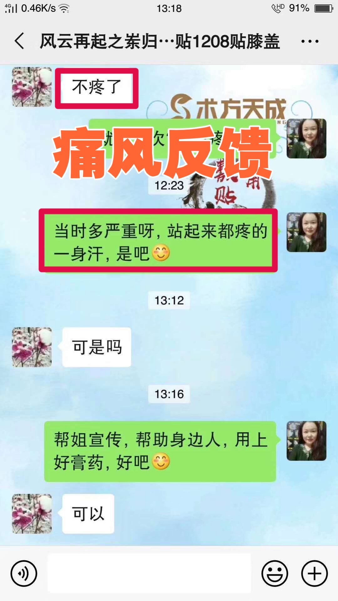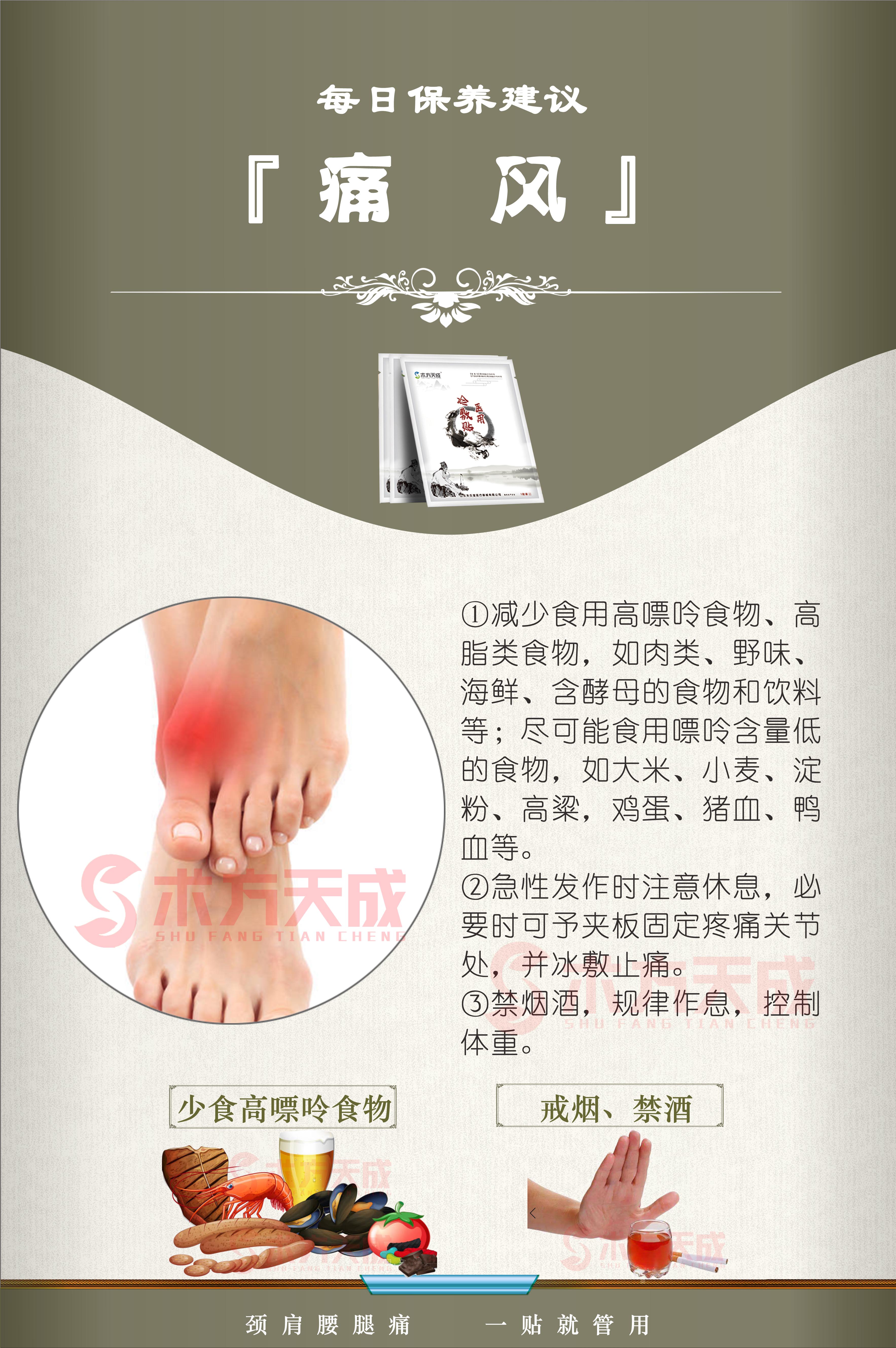 痛风反馈 顾客同时有痛风+滑膜炎+半月板受损+双膝关节退行性病变,导致行走不便。之前吃药、打针、理疗,方法用尽,效果也不明显,贴术方天成仅10天效果非常好,要回购100贴
