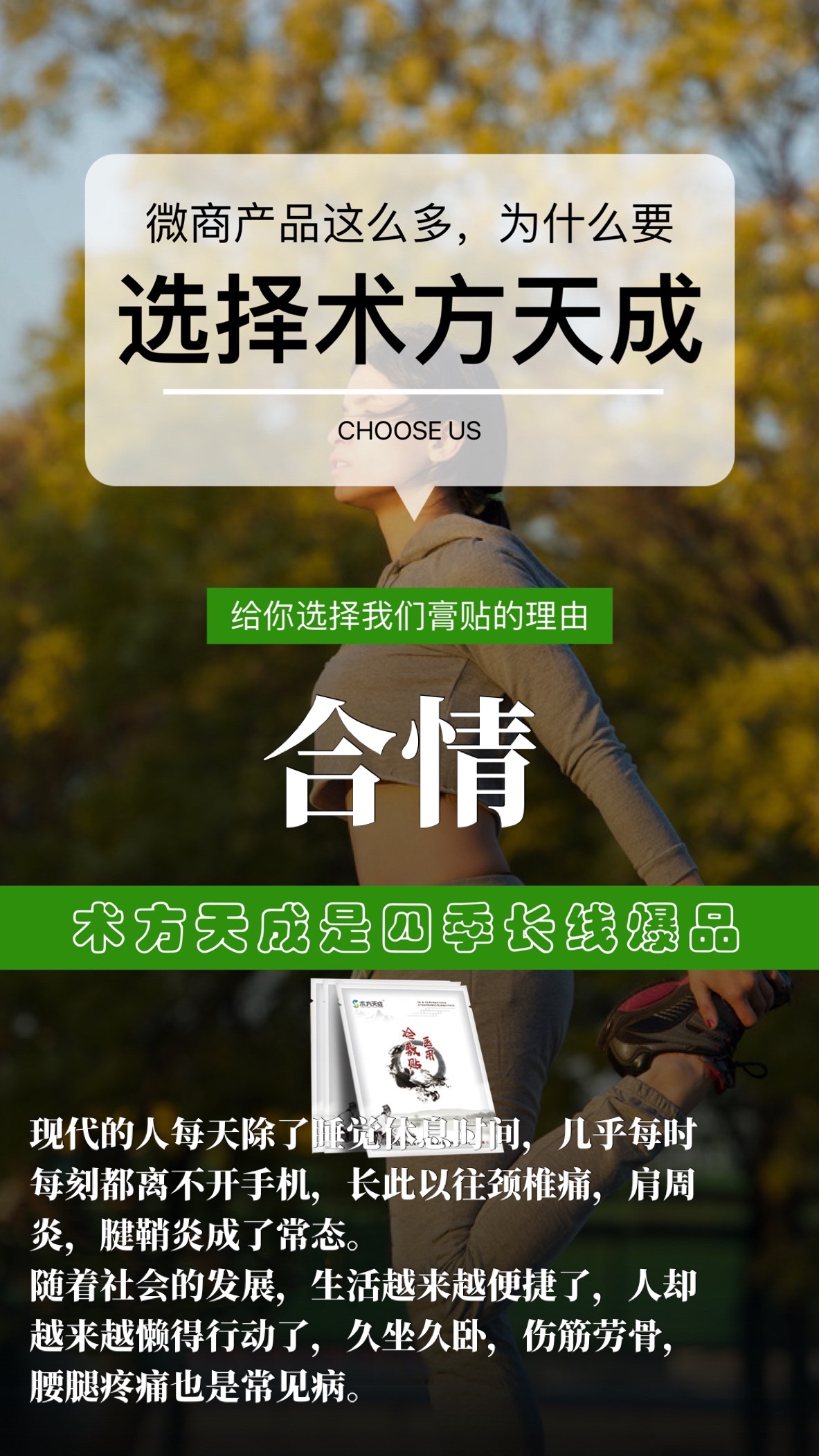 微商六年,坚持只做膏贴的三大理由 坚定我们的格局、捍卫我们的使命,术方天成,从来只用实力证明自己! 膏手久仰,英雄梦想!加油