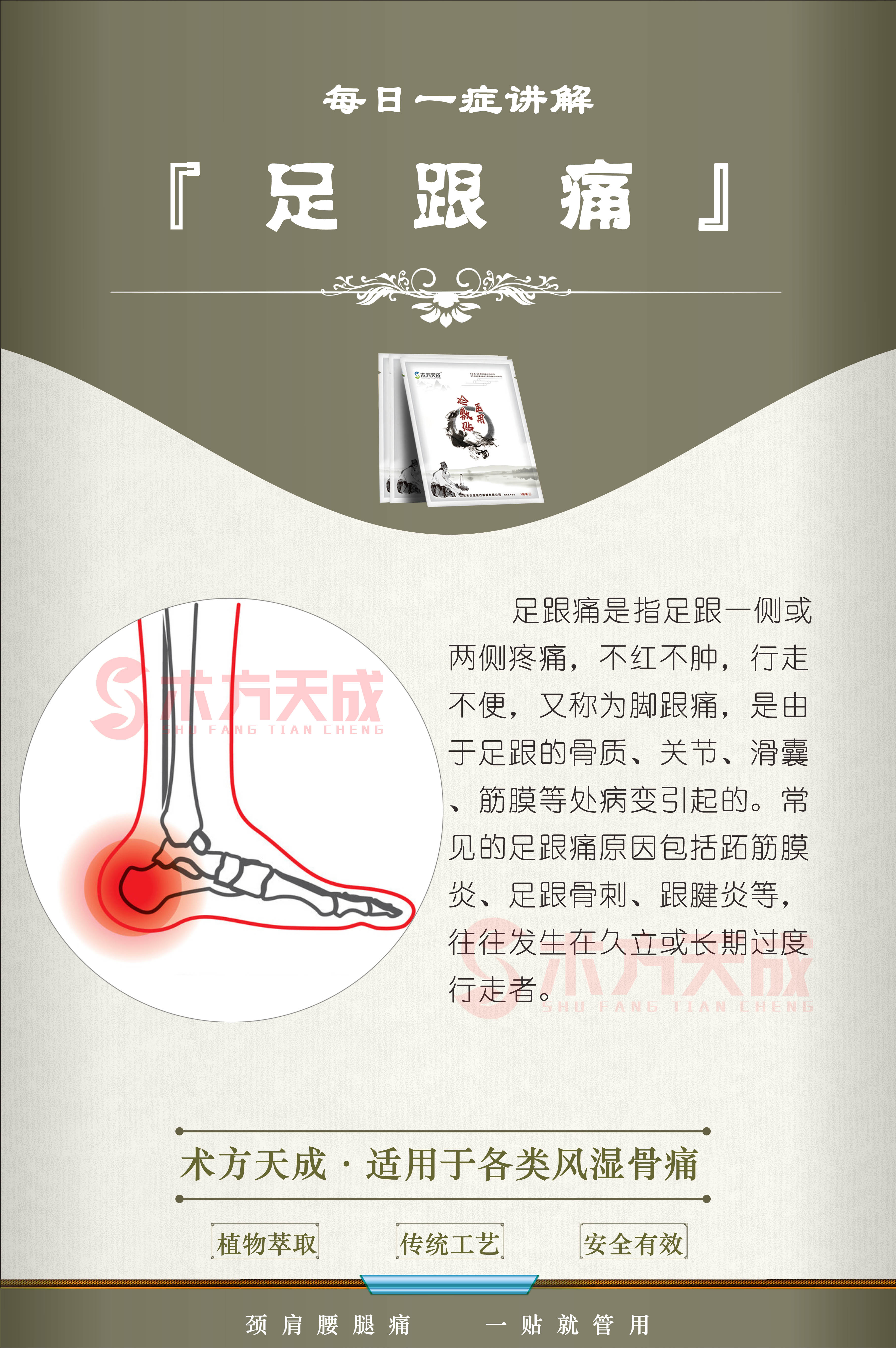 足跟痛反馈 顾客脚后跟疼的就像踩钉子一样,用术方天成贴好了一年多没再疼