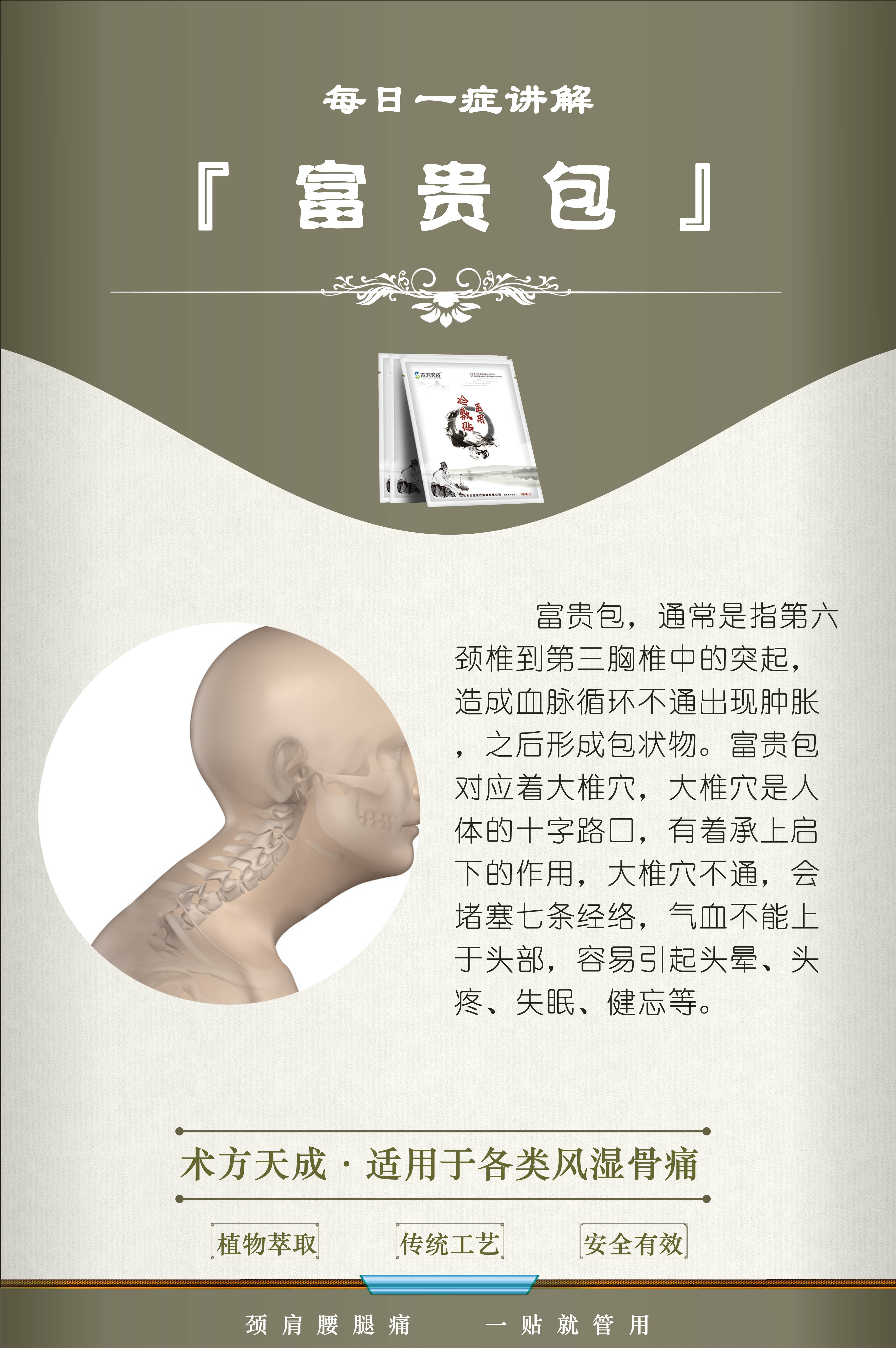 富贵包反馈 顾客富贵包造成脖子僵硬、后脑勺发木,贴术方天成4天,顾客说不僵硬了,麻木的感觉也明显减轻了
