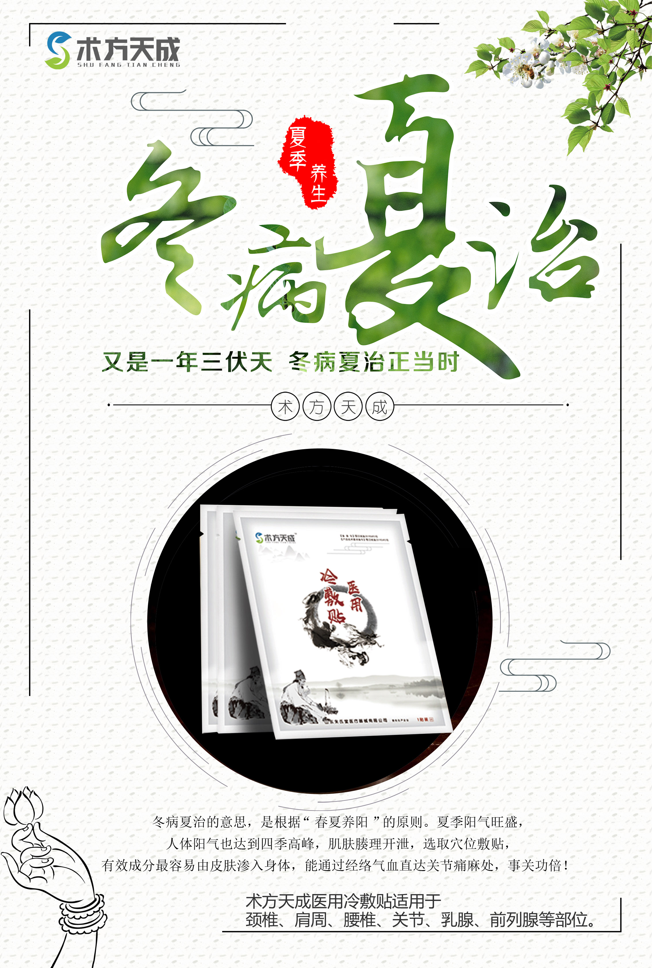 盛夏好时光 冬病夏治忙 冬病夏治理论是指:在夏季对人体进行药物或非药物疗法,益气温阳、散寒通络,从而起到防治冬季易发疾病的目的。术方天成好膏贴,冬痛夏贴正当时!