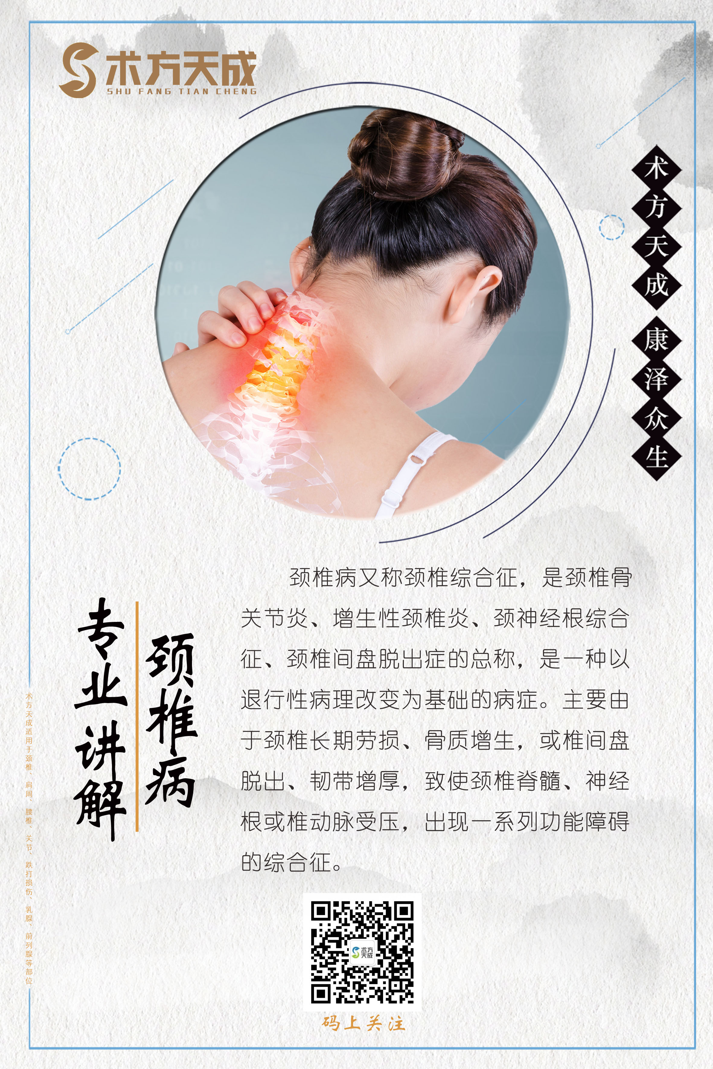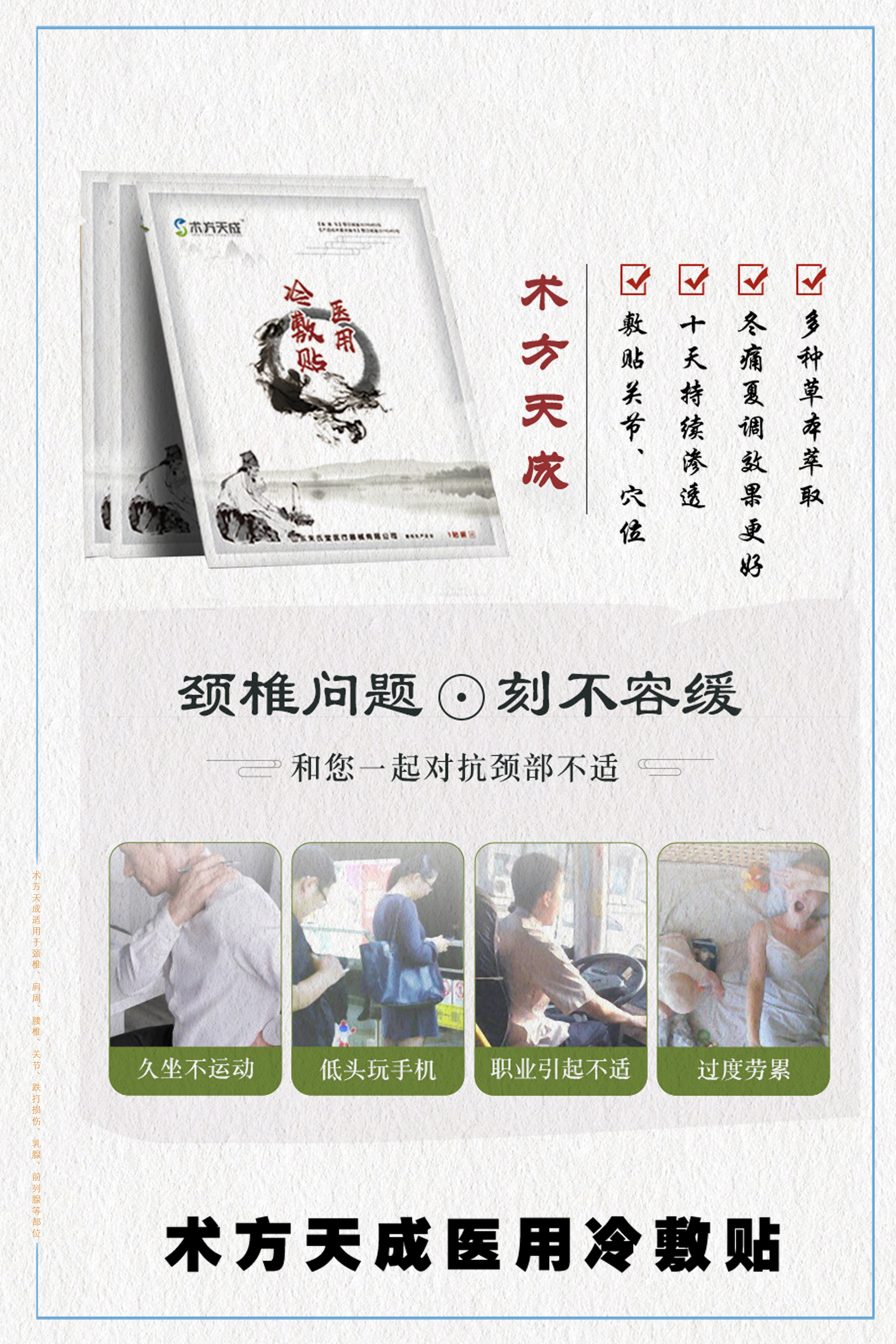 颈椎问题,刻不容缓 术方天成和您一起对抗颈部不适 草本植物萃取 冬痛夏调高效 十天持续渗透 关节穴位配合 术方天成,还您颈部健康!