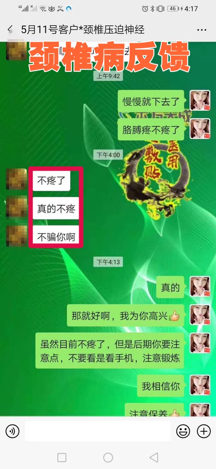 颈椎病反馈 顾客贴敷术方天成10天已经完全不疼了 夏天是人体新陈代谢最活跃的一季,有明显的“内生热效应”,对药物的吸收更全面更彻底,是调理风湿骨痛的最好时机