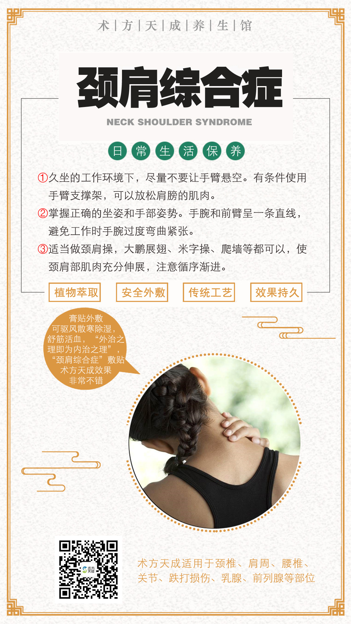 颈肩综合症反馈 敷贴术方天成20天,颈椎舒服了,胳膊也不麻了还介绍两位肩周炎的朋友来用术方天成