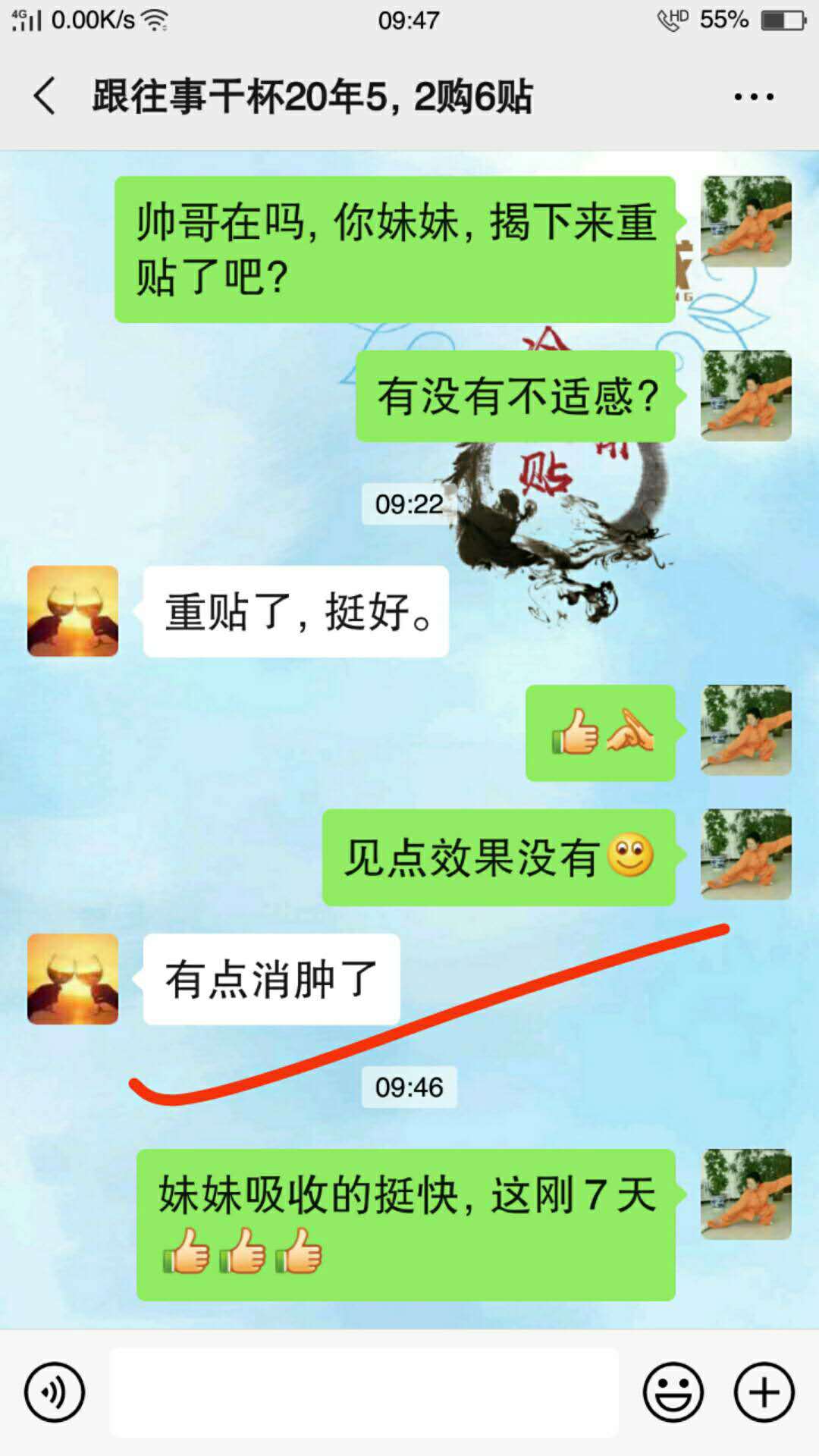 老伤反馈 敷贴术方天成五天就有些消肿了,吸收的非常不错,按周期敷贴远离老伤困扰