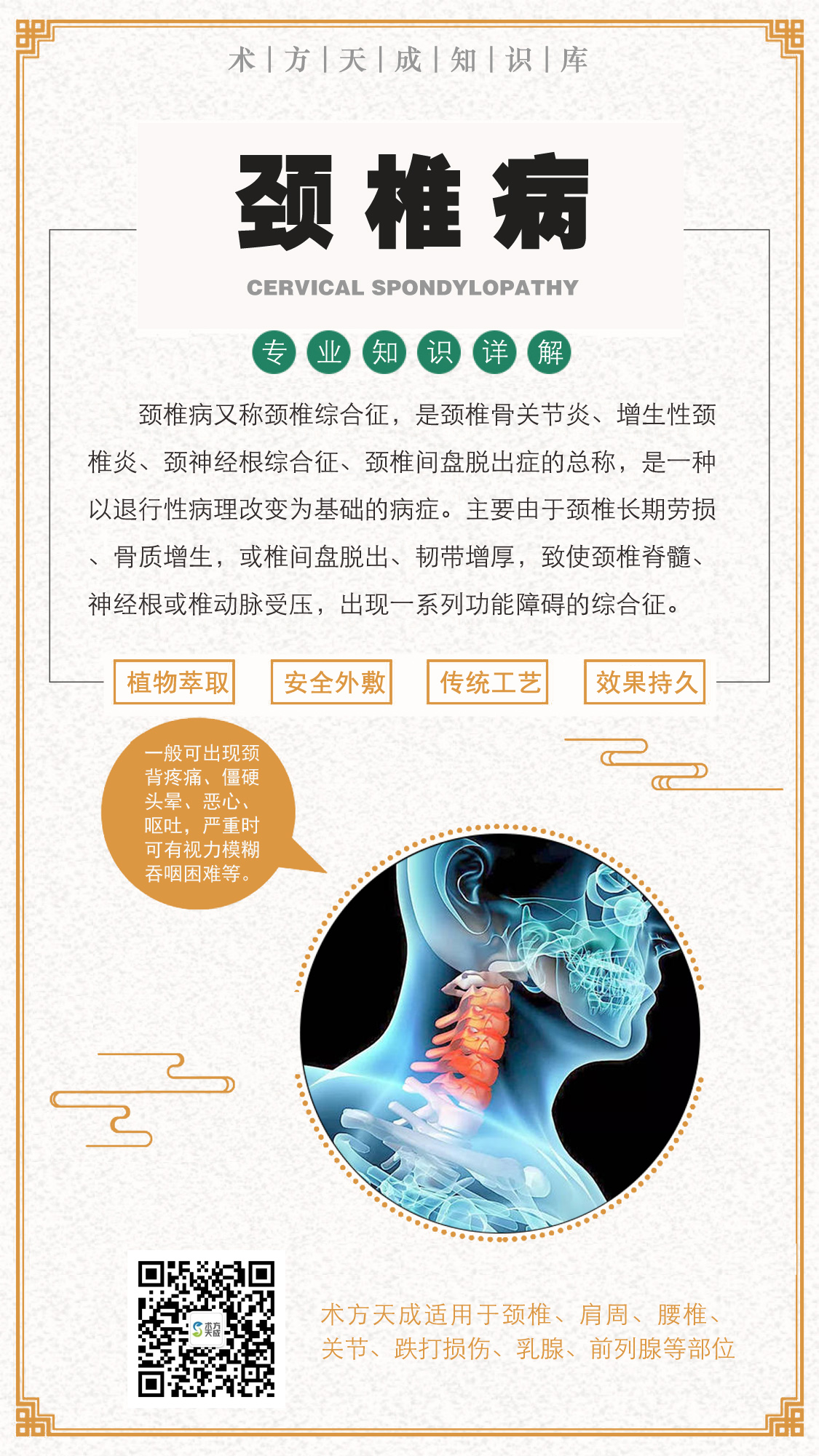 颈椎病反馈 颈椎病造成头晕,顾客说:“对他效果特别好,贴上术方天成没几天,头就不晕了”冬病夏治事半功倍