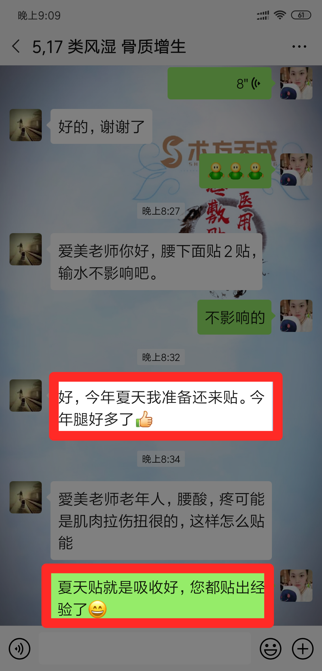 类风湿反馈 绥阳县的姐姐类风湿多年,也用过很多方法效果不理想,用咱们术方天成贴了几个月已经完全不痛了