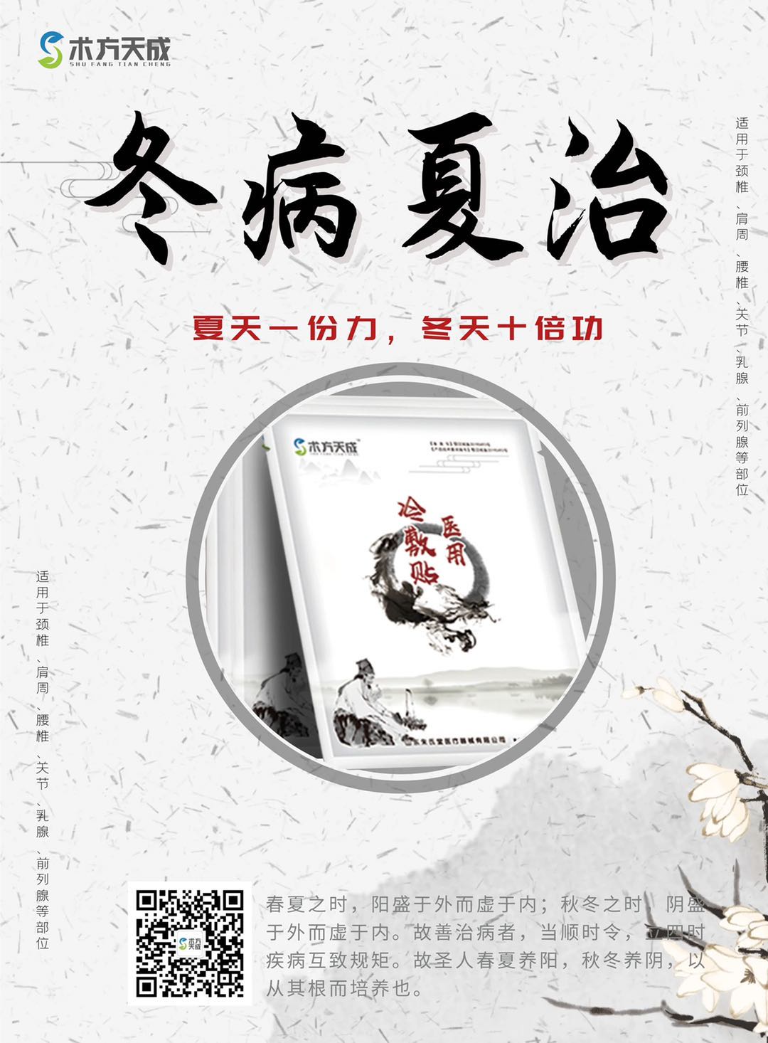 夏天一份力 冬天十倍功 身体在寒冷季节容易出现的问题,夏天调理效果更好。借助炎热夏季的阳气来补身体里不足的阳气,让体质打个完美的“翻身仗”。术方天成医用冷敷贴适用于各类颈肩腰腿痛不适,这个季节用,见效更快噢。