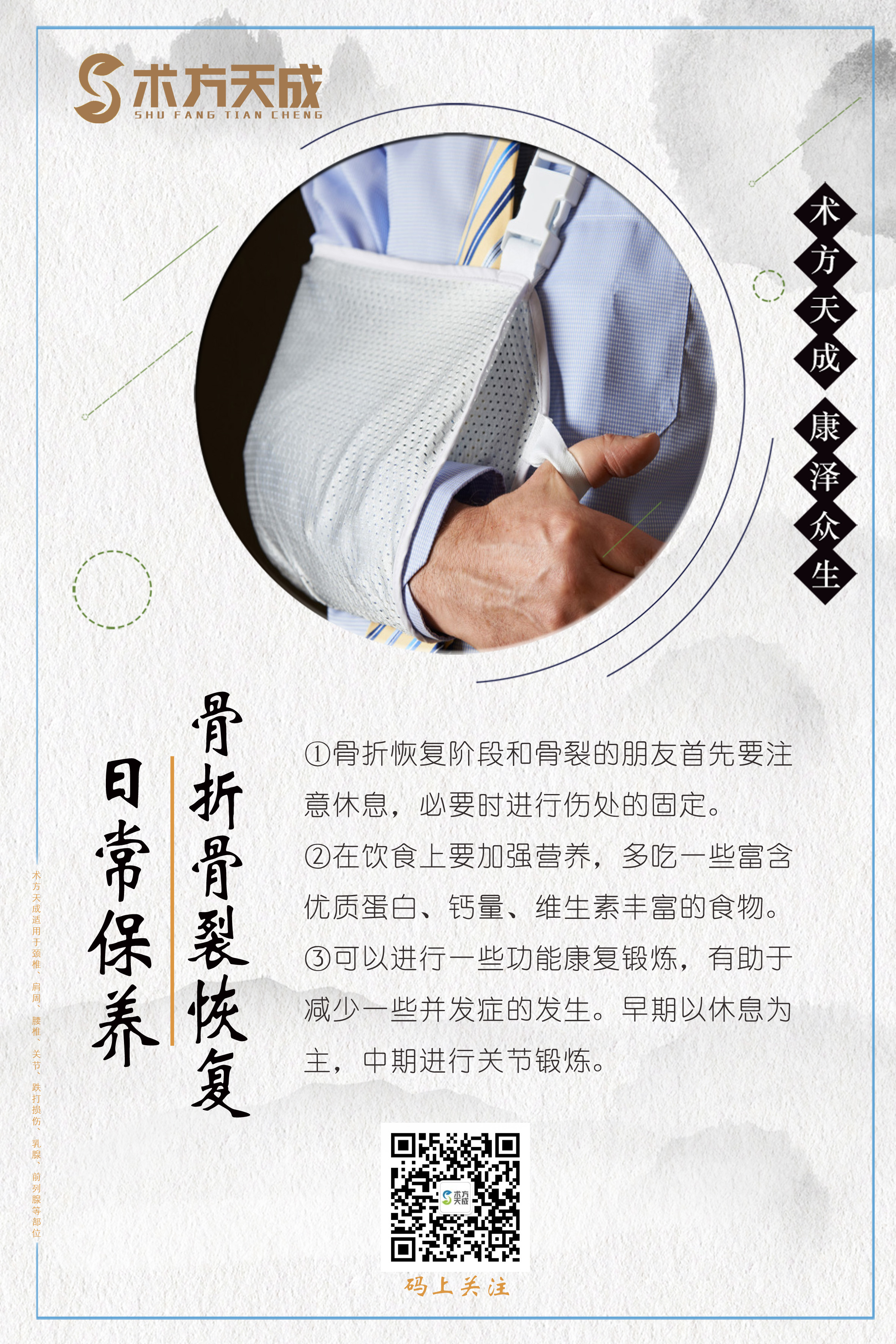 术方天成 康泽众生 为您分享骨折骨裂日常保养