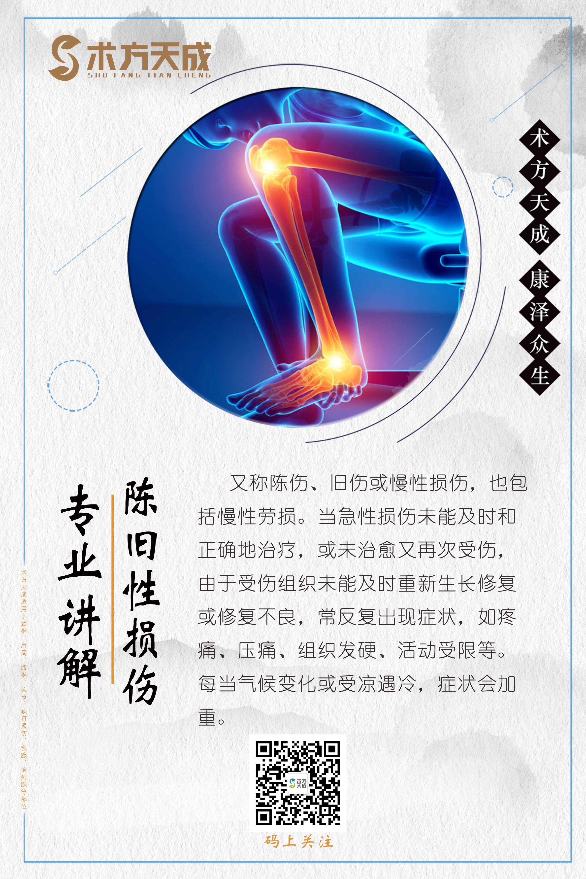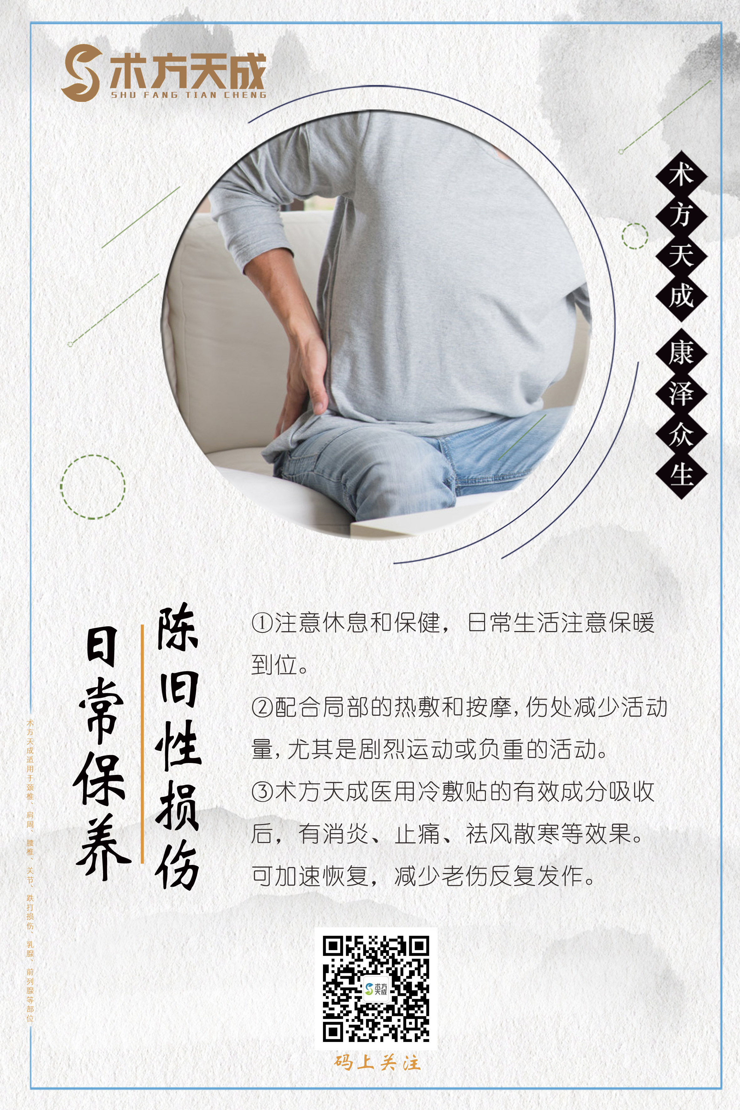 术方天成 康泽众生 为您分享陈旧性损伤日常保养