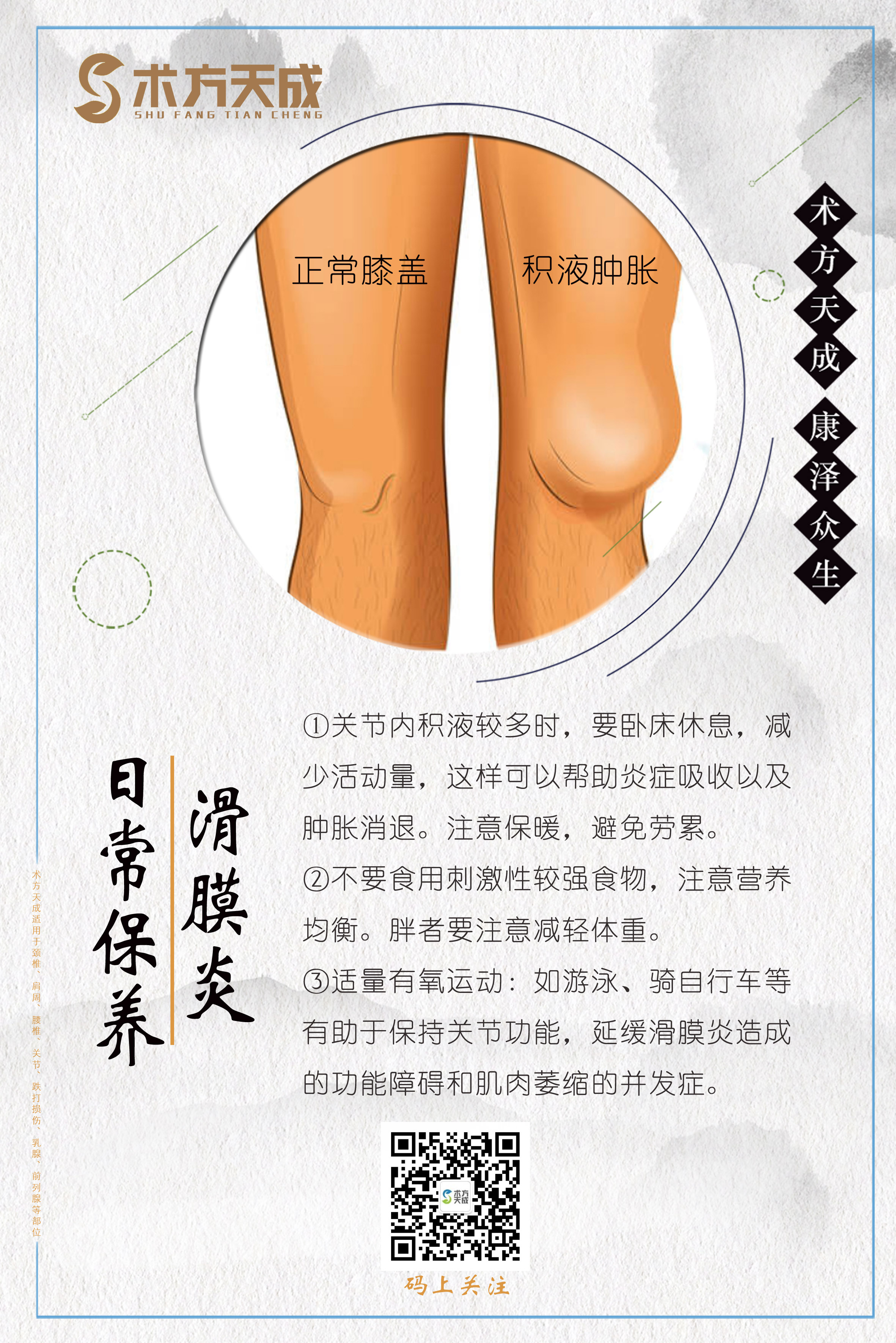 术方天成 康泽众生 为您分享滑膜炎日常保养