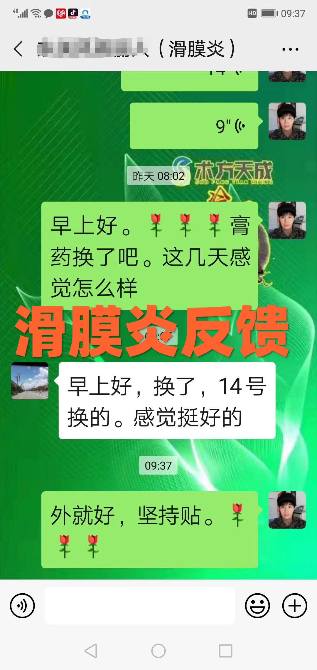 滑膜炎反馈 顾客贴敷术方天成第二次,反馈说:效果挺好的[强]