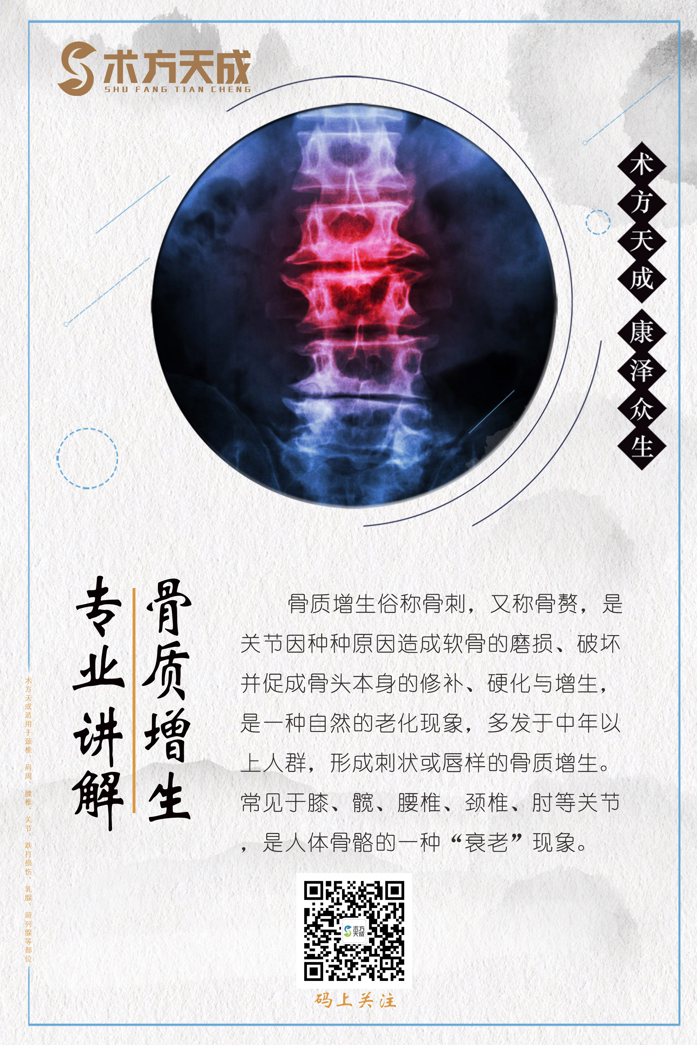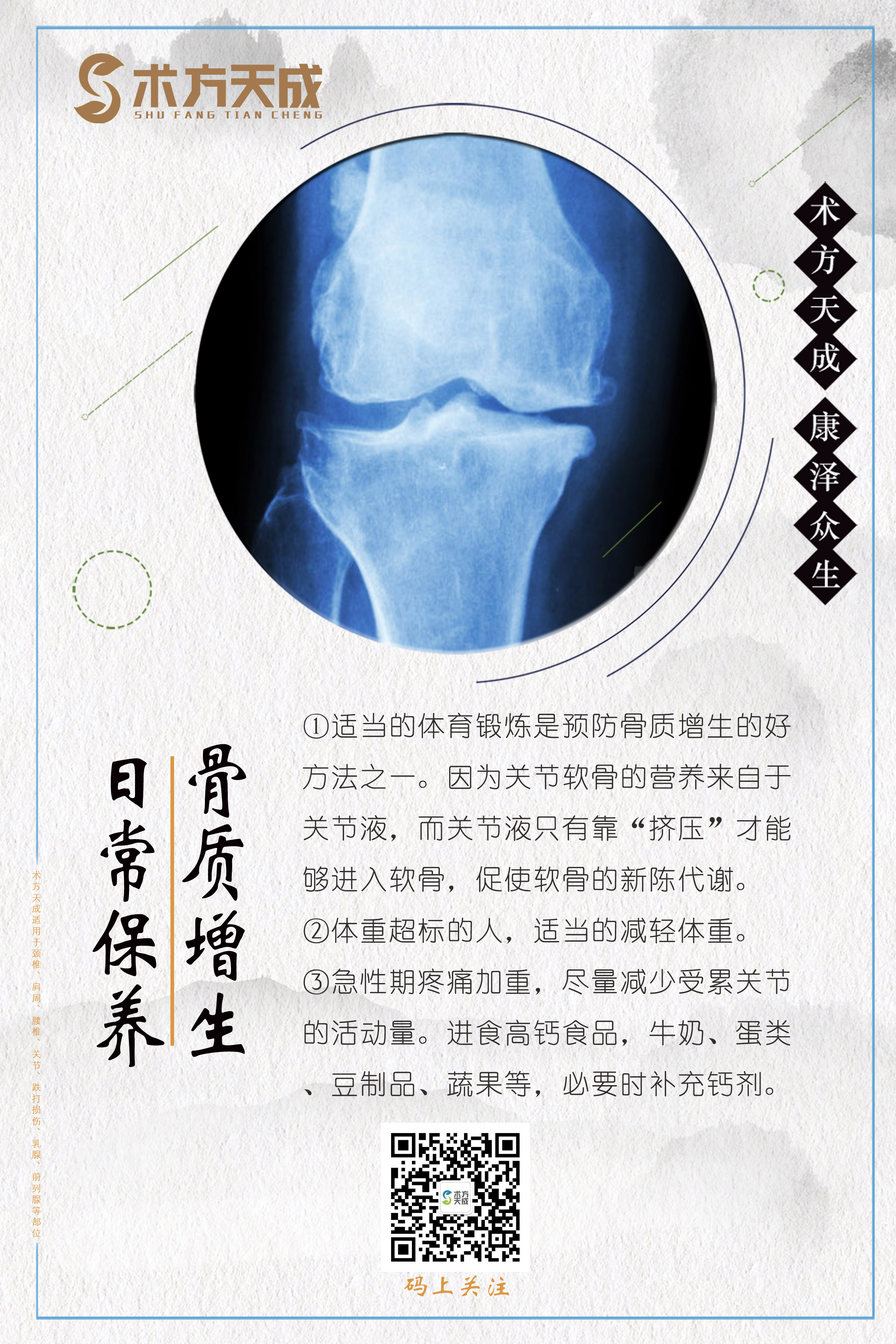 术方天成 康泽众生 为您分享骨质增生日常保养
