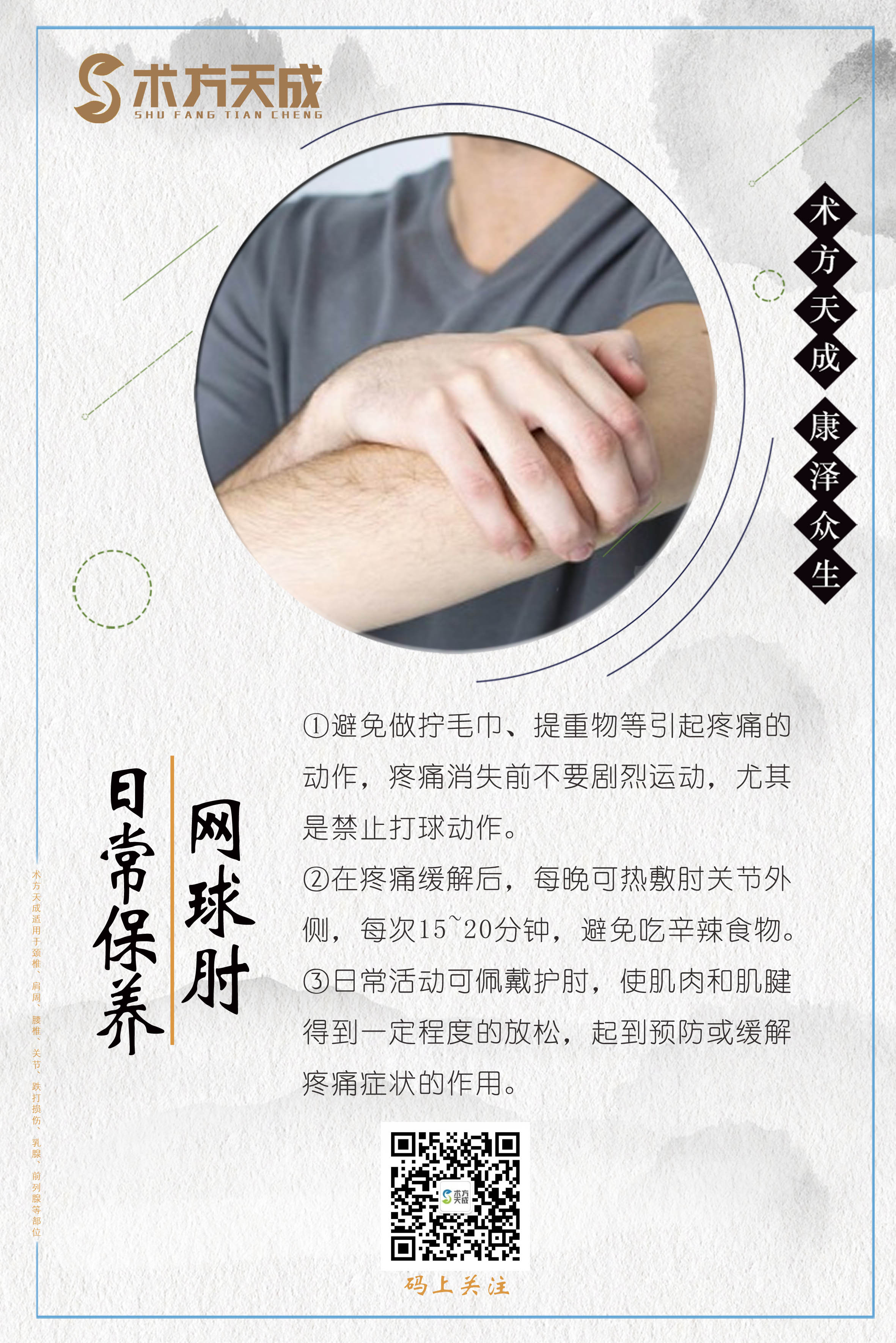 术方天成 康泽众生 为您分享网球肘日常保养