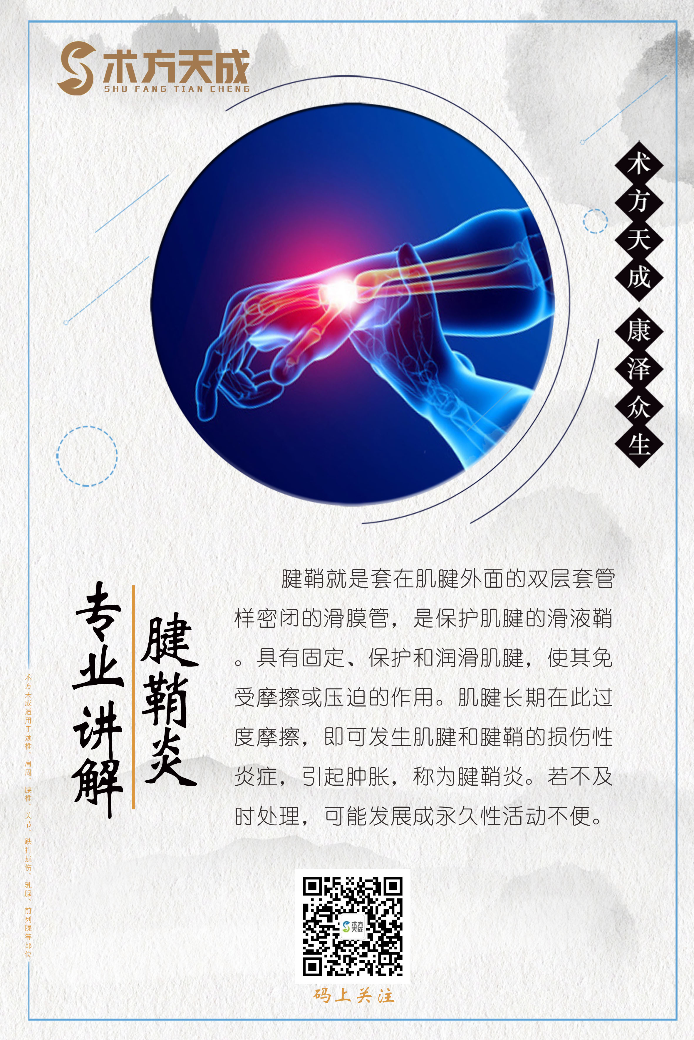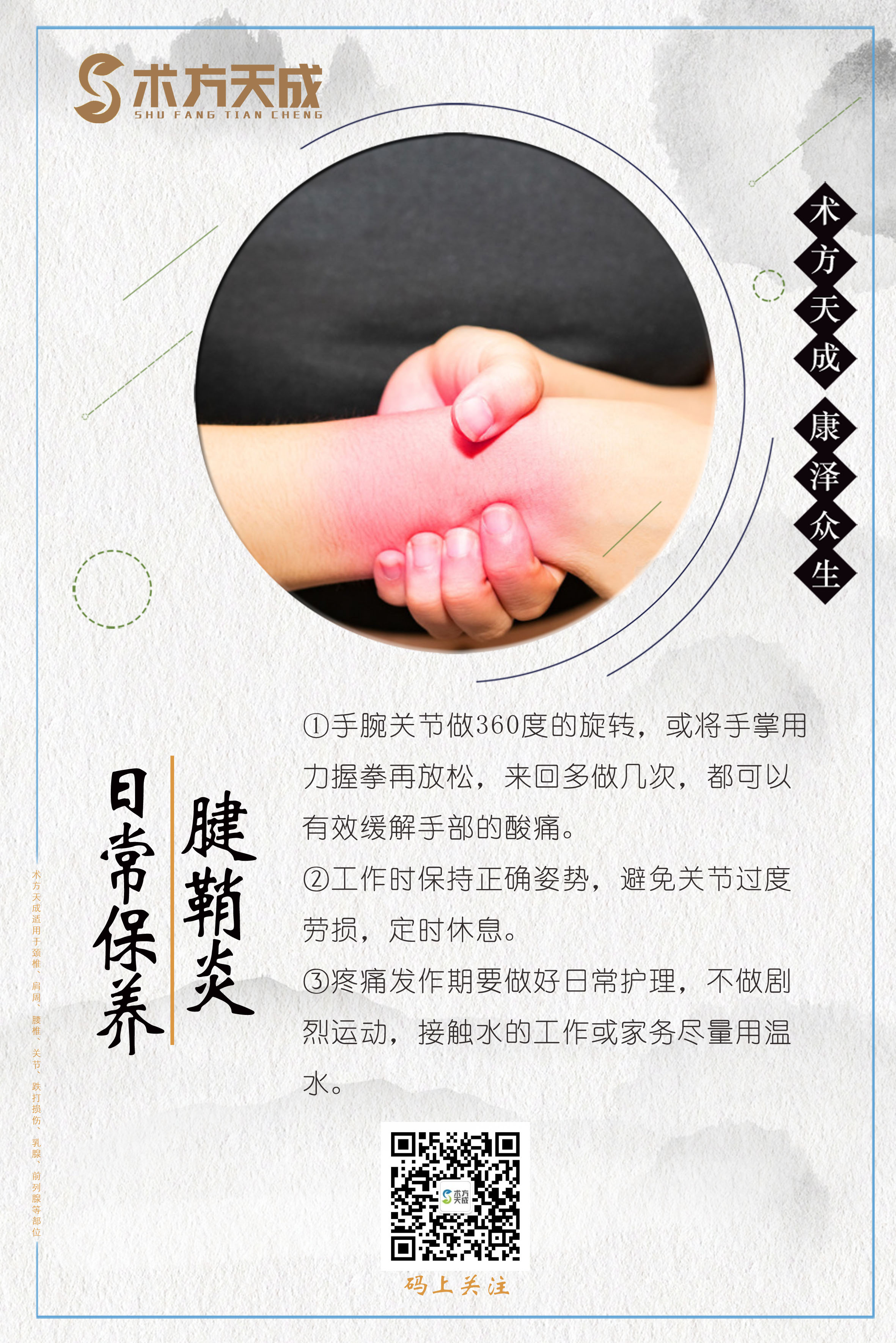术方天成 康泽众生 为您分享腱鞘炎日常保养