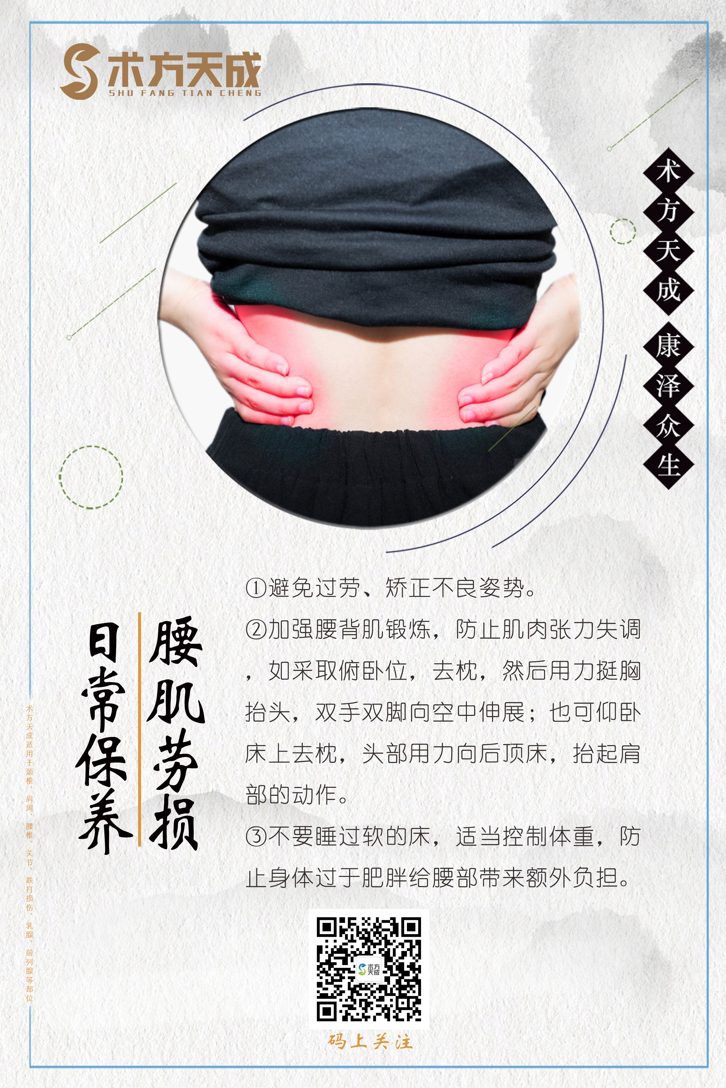 术方天成 康泽众生 为您分享腰肌劳损日常保养