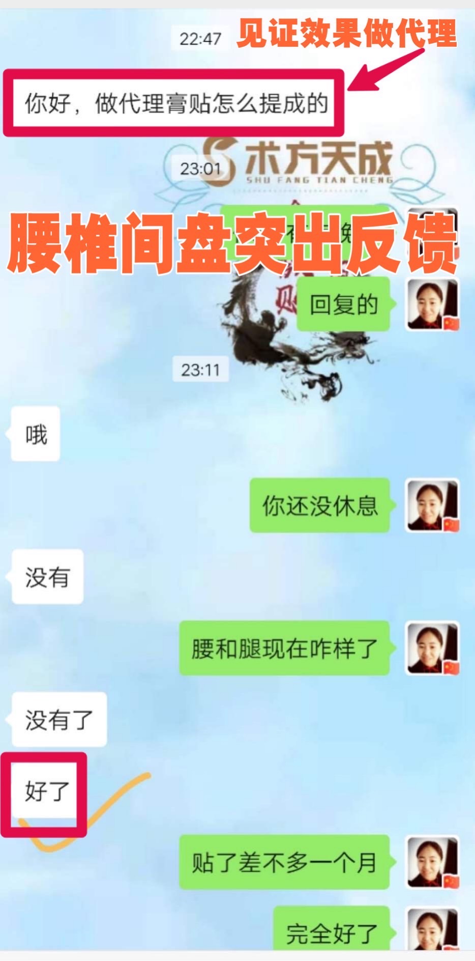 腰椎间盘突出反馈 顾客腰突压迫神经腿痛,贴敷术方天成一个月好了,也要加入做代理