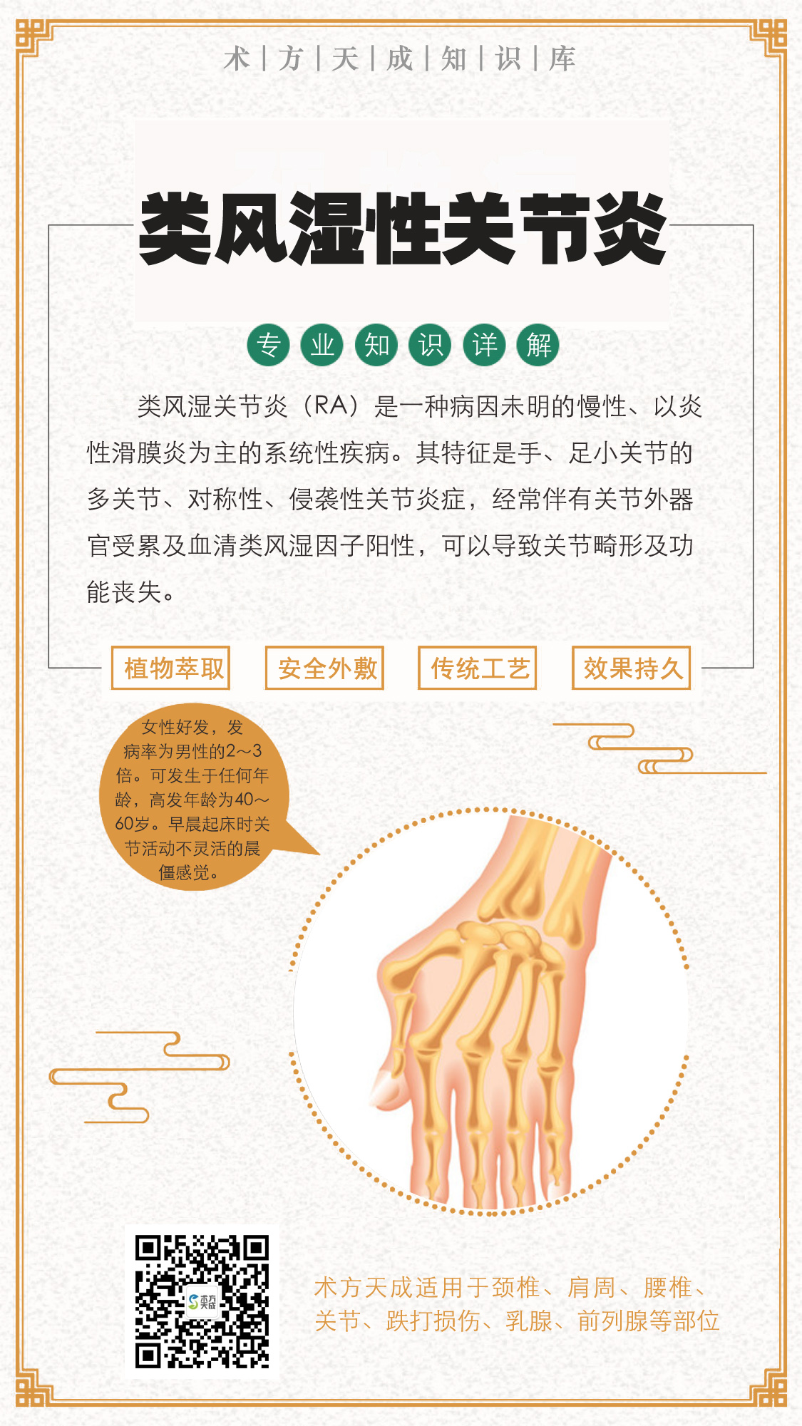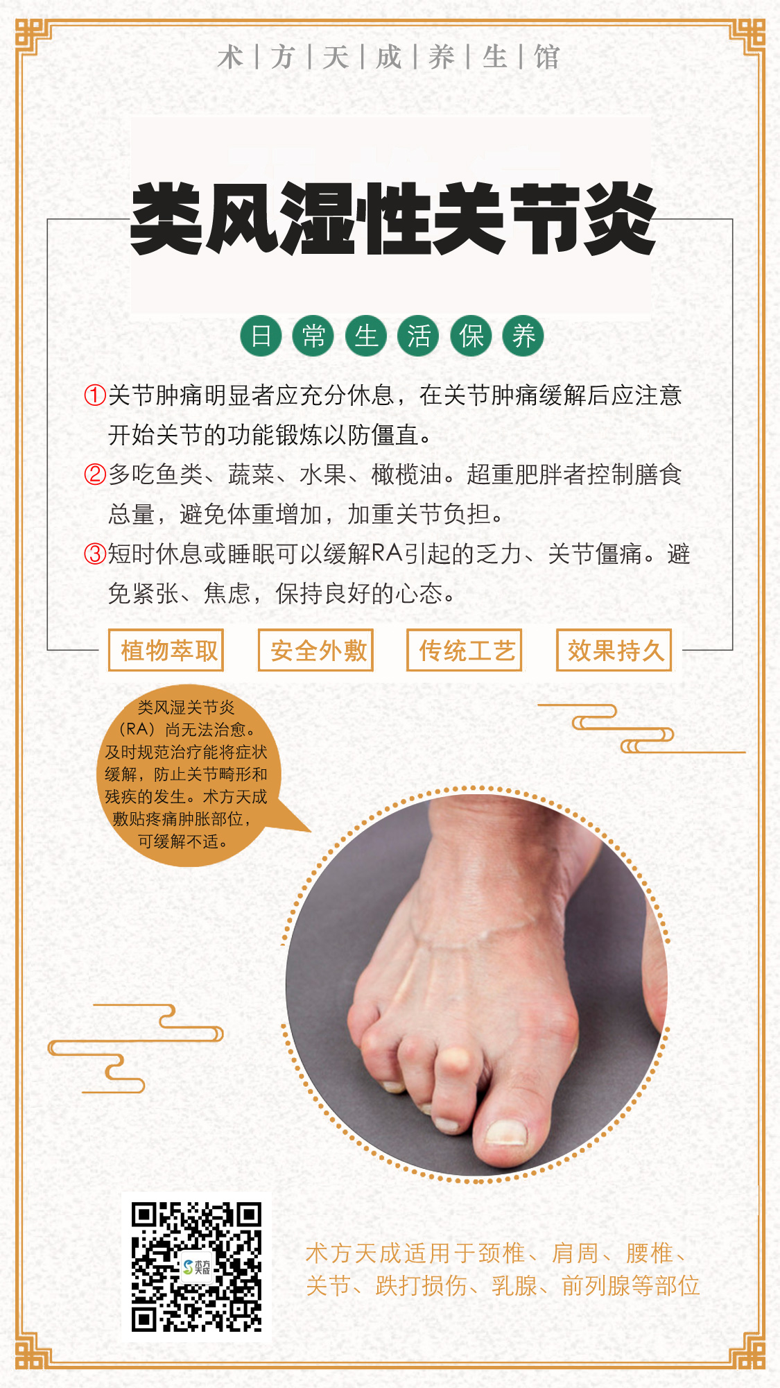 术方天成为您分享 『类风湿性关节炎日常保养』