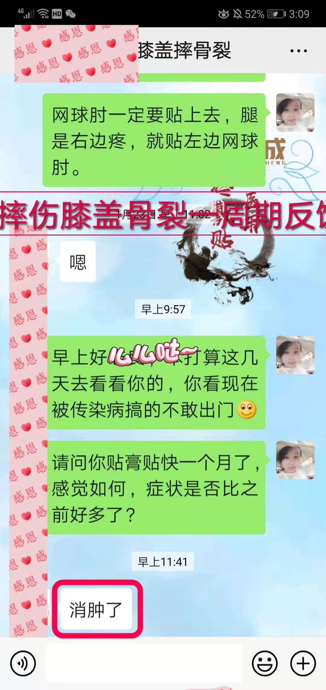 膝盖骨裂反馈 顾客膝盖摔伤导致骨裂,没贴术方天成时肿痛,用了不到一周期消肿止痛效果很不错