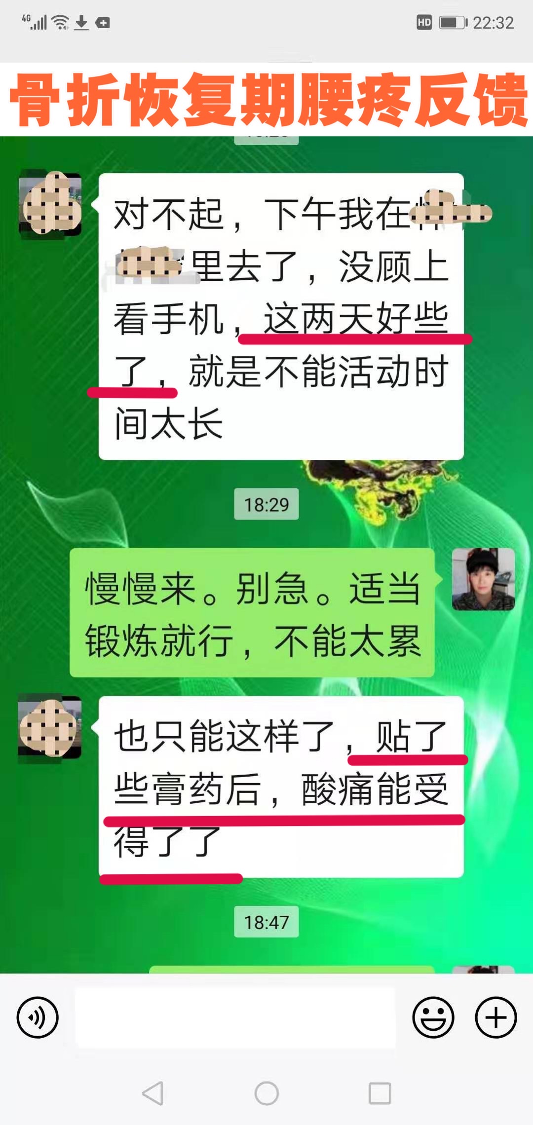 骨折恢复期腰痛反馈 贴术方天成三天好点了,酸痛能忍受了