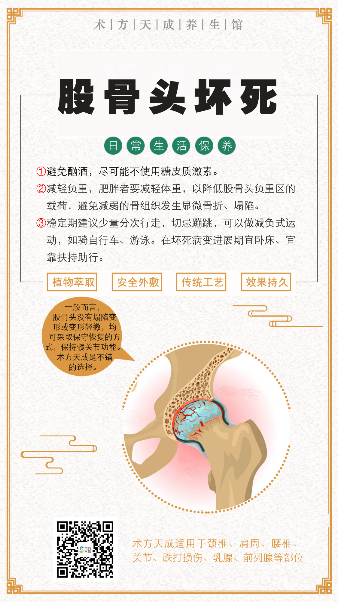 术方天成为您分享 『股骨头坏死日常保养』