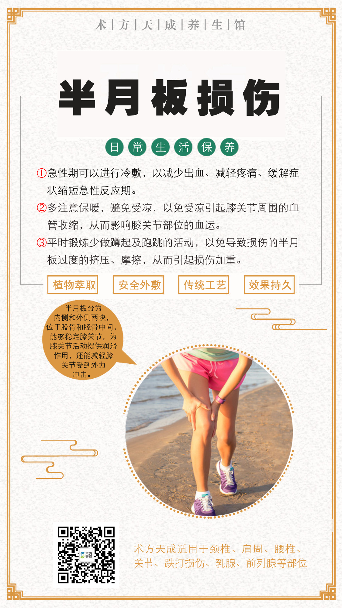 术方天成为您分享 『半月板损伤日常保养』