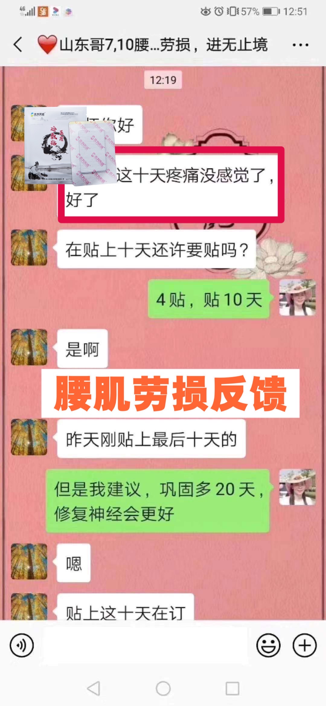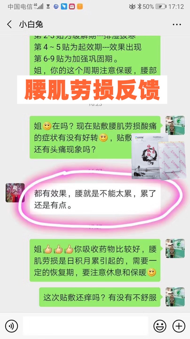 腰肌劳损反馈 贴了三天,顾客说感觉稍微好点了