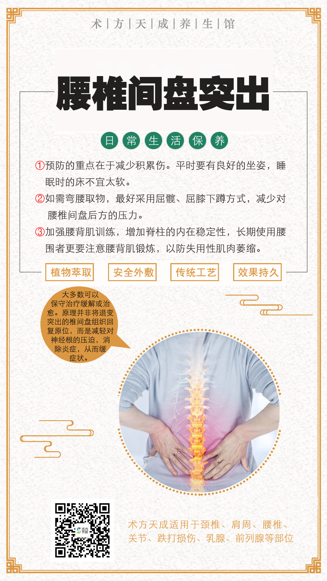术方天成为您分享 『腰椎间盘突出日常保养』