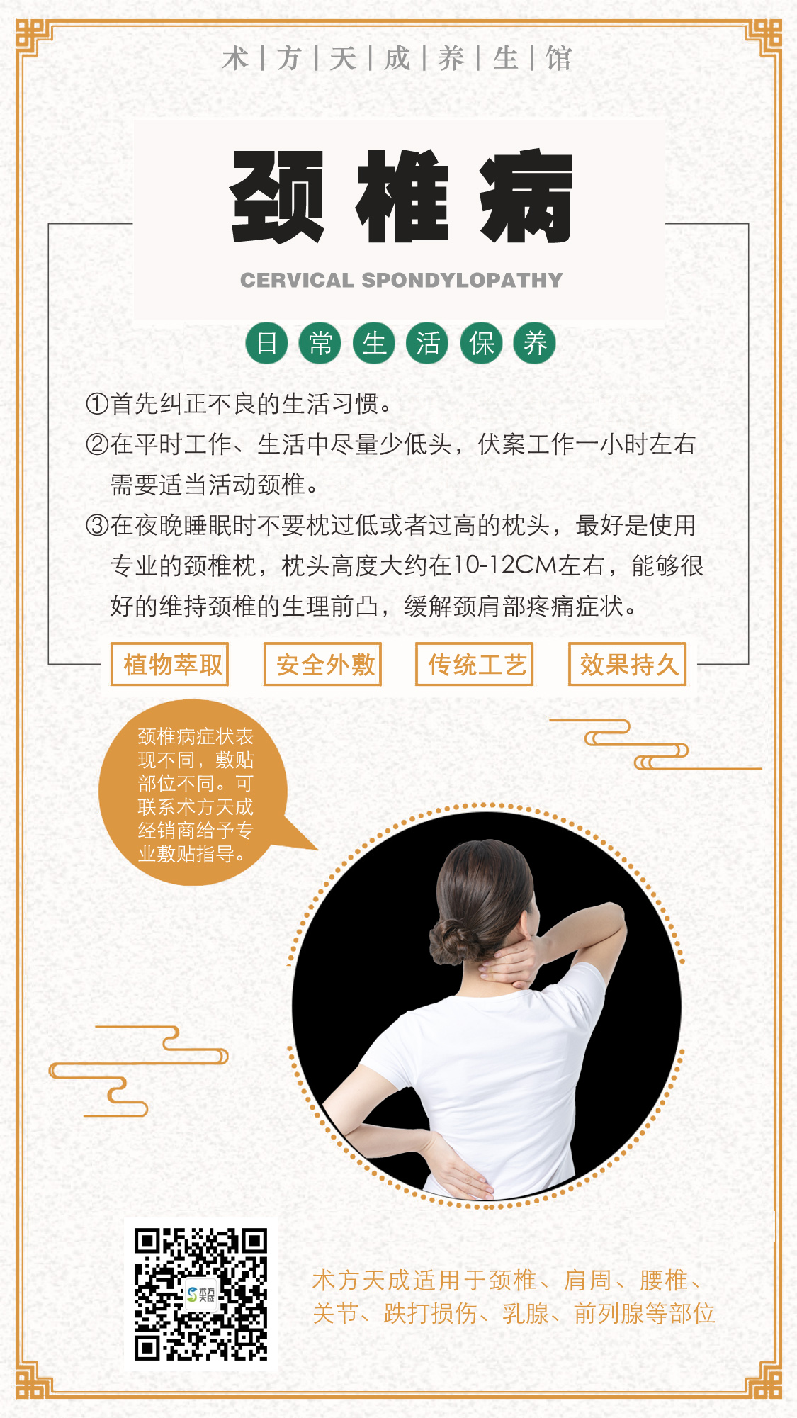颈椎不适反馈 顾客刚好贴术方天成一个周期,感觉效果还可以,头痛好些了,只是头还有点昏,坚持按周期贴,效果肯定不会让您失望的