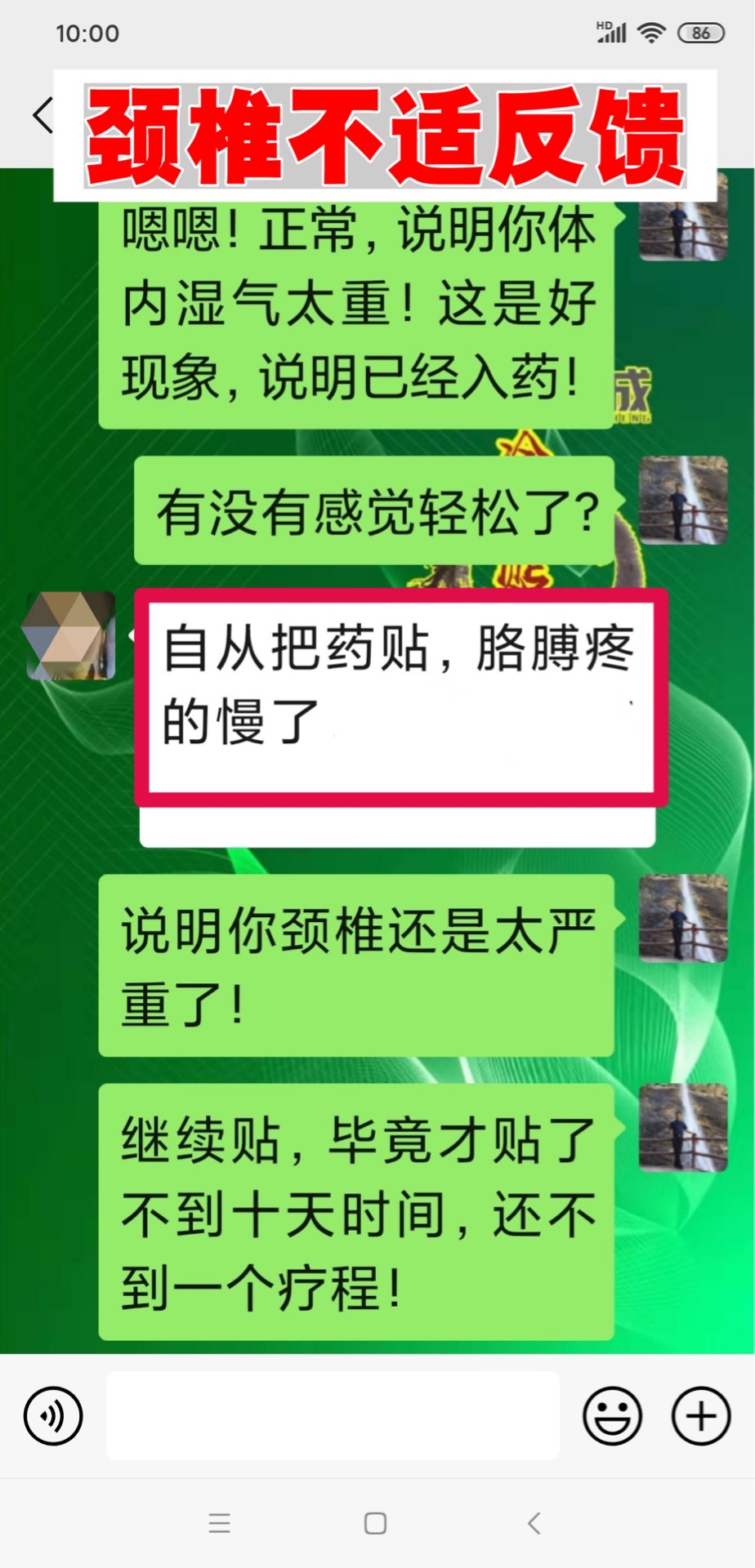 颈椎不适反馈 贴敷术方天成不到10天时间,胳膊疼的慢了(疼痛减轻)