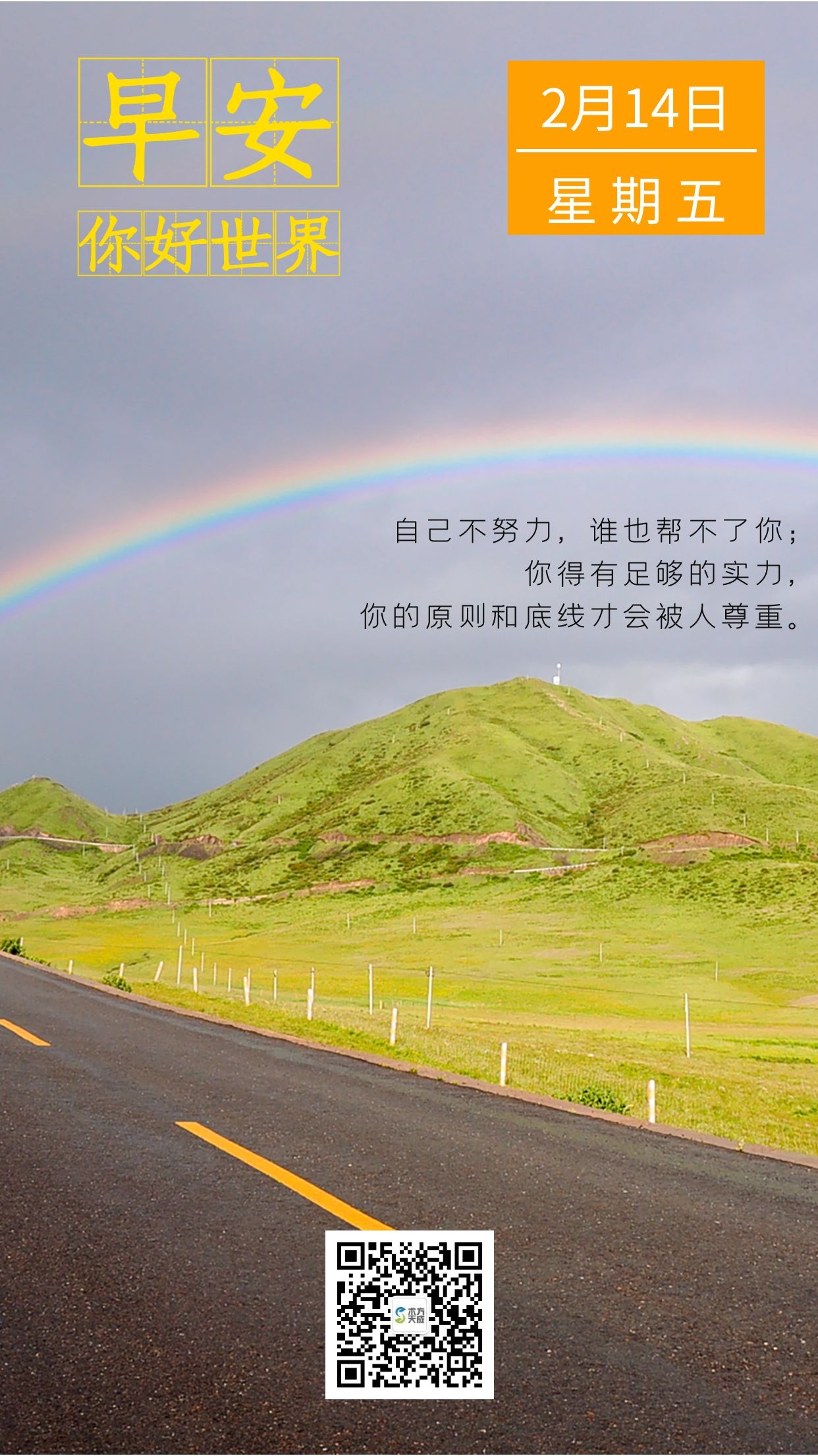 自己不努力,谁也帮不了你; 你得有足够的实力, 你的原则和底线才会被人尊重。 早安~