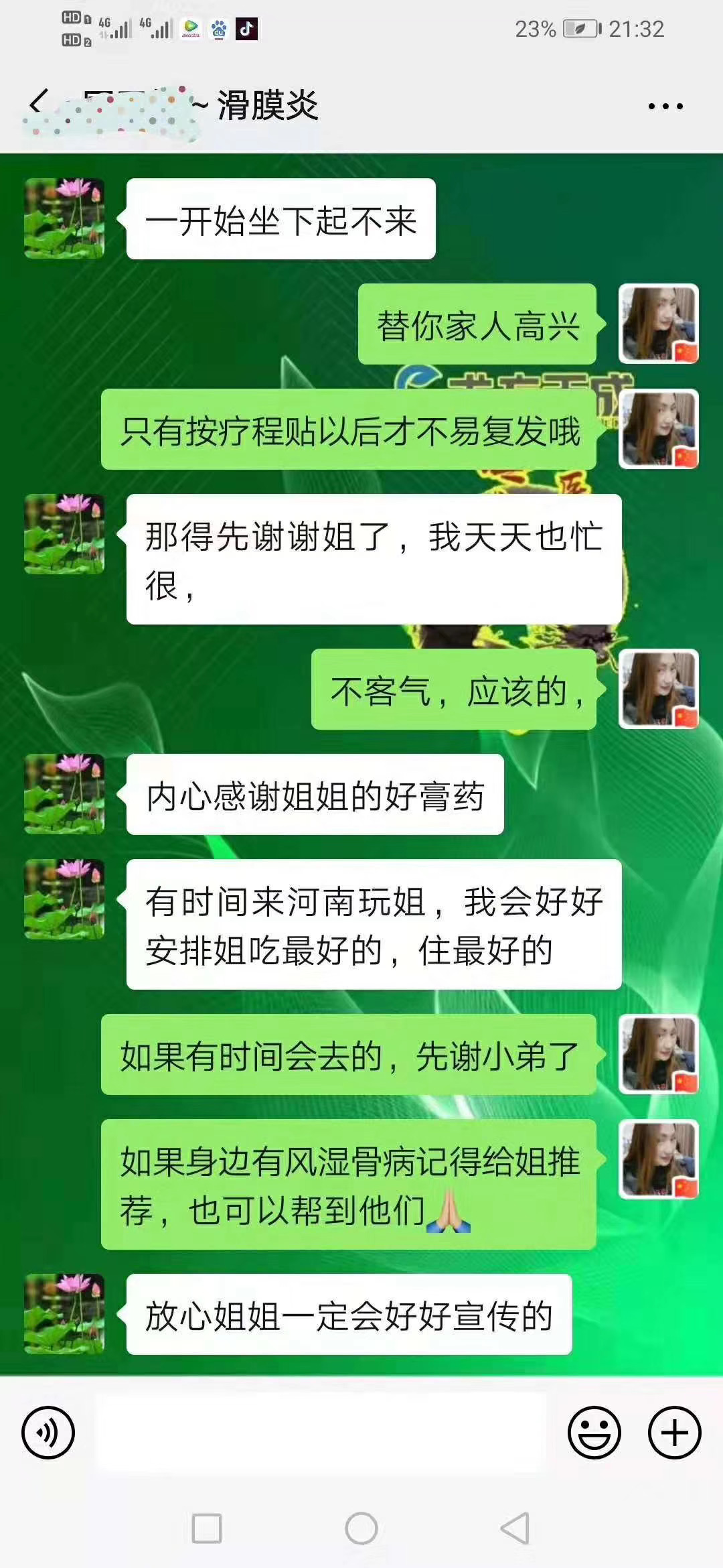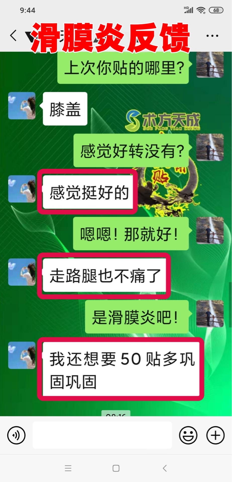 滑膜炎反馈 顾客贴敷术方天成第五天说轻松点了按周期使用一定会贴出你想要的效果