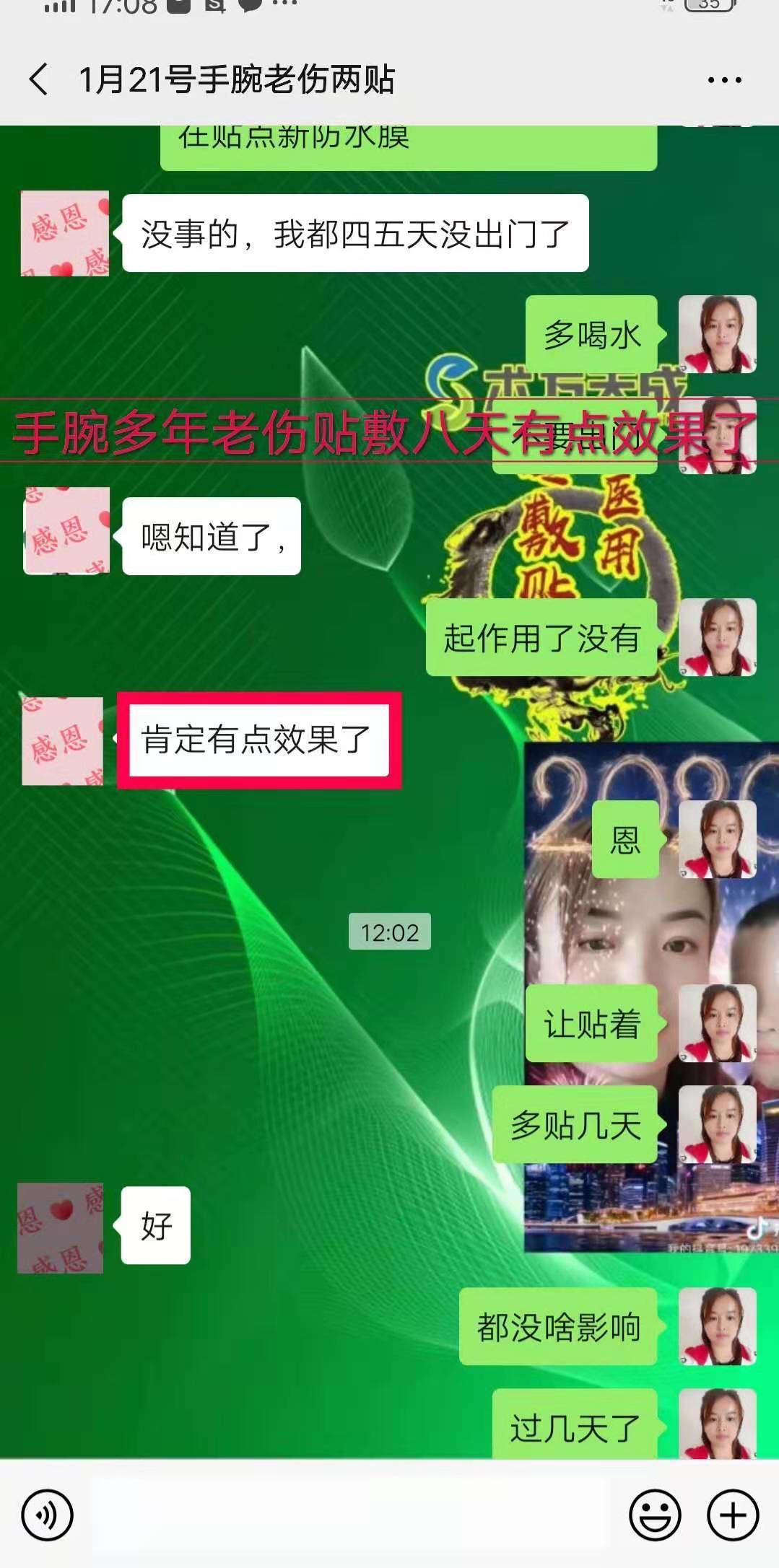手腕老伤多年 贴敷八天时间有效果了 术方天成效果就是好