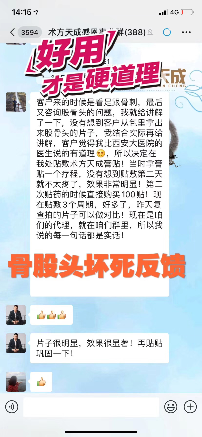 股骨头坏死反馈 第四次换膏贴,顾客说没有之前疼了[强]