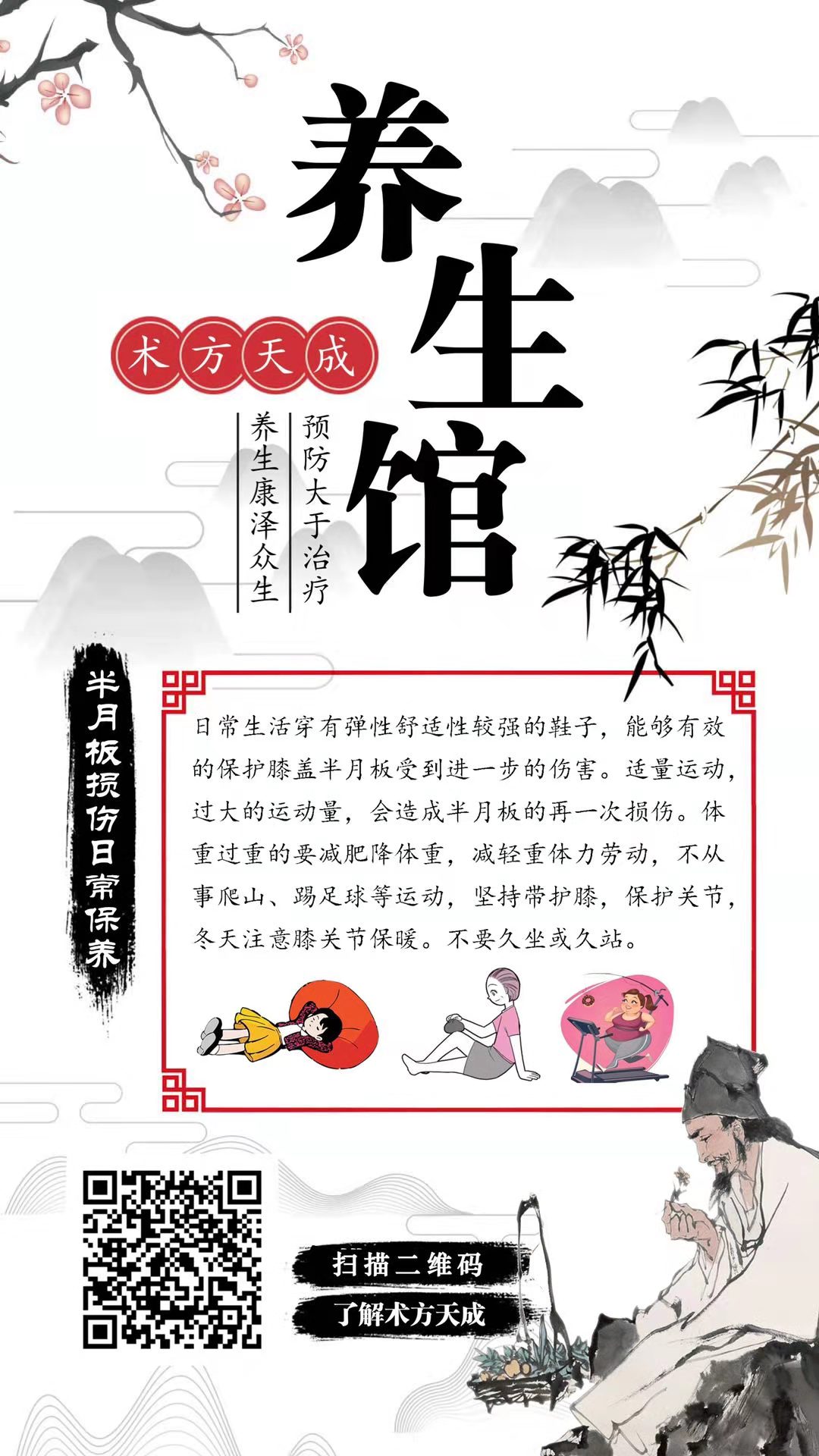 术方天成养生馆分享『半月板损伤保养』 预防大于治疗 养生康泽众生