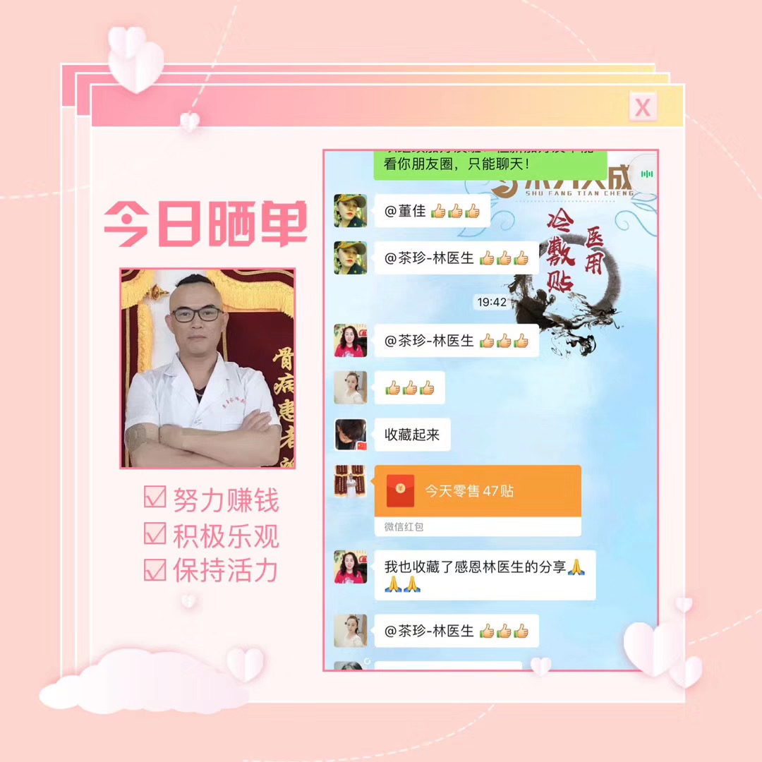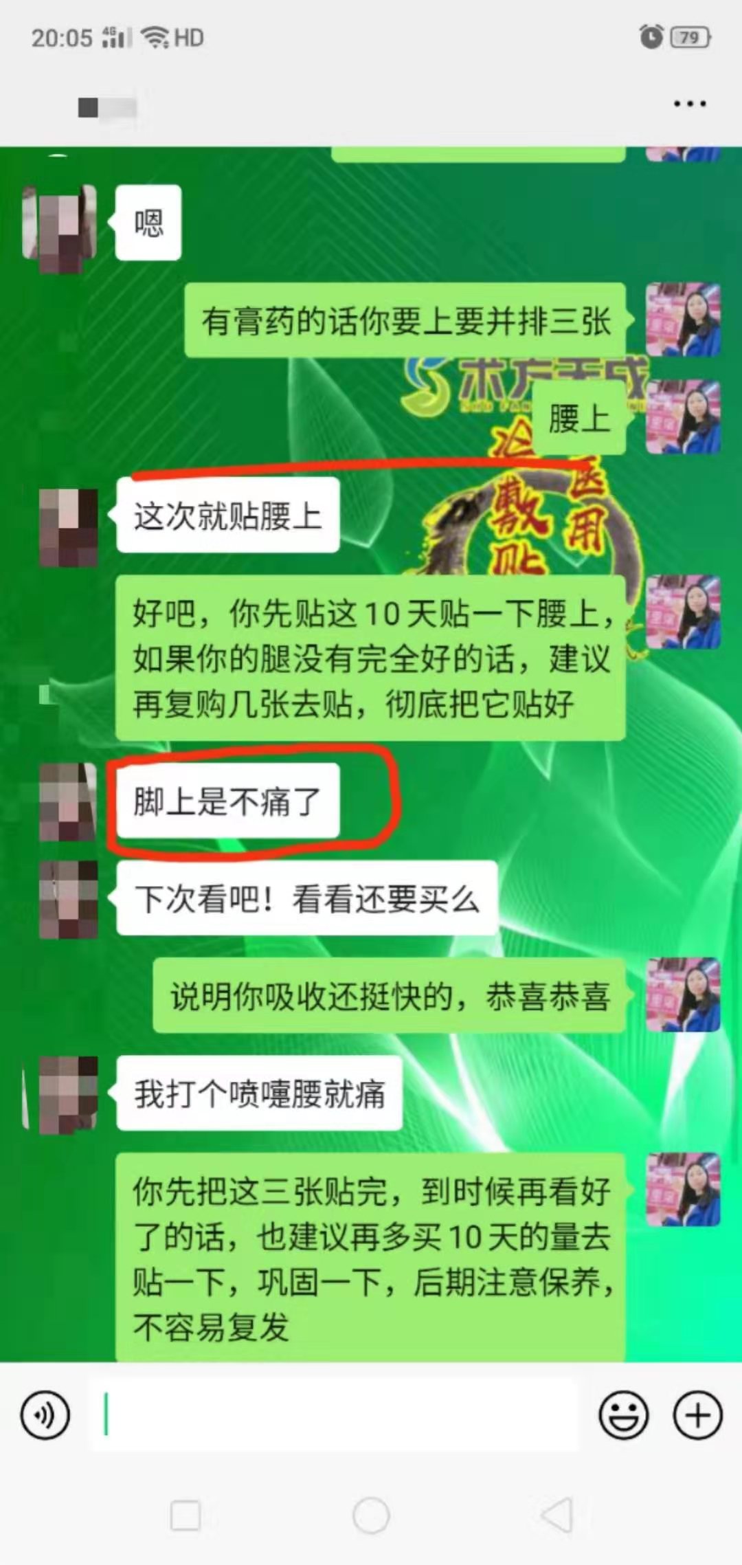 半夜来个好反馈这位顾客的朋友去年7月份颈椎+腰椎不适贴我们膏贴20天就不贴了,到现在都没疼过
