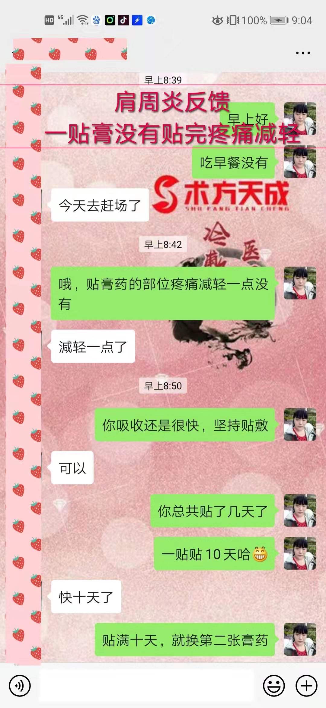 肩周炎反馈 大哥肩部酸痛贴咱们术方天成,不到10天,疼痛减轻,谁贴谁健康
