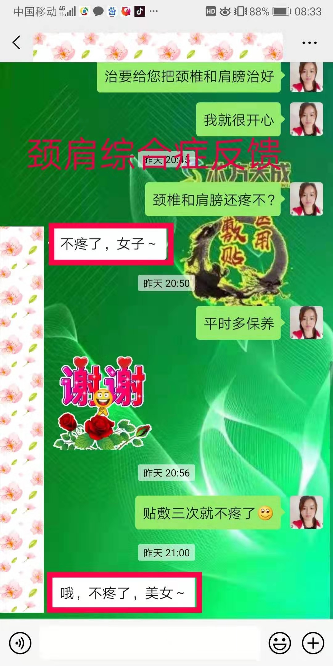 颈肩综合症反馈 颈椎压迫神经导致手麻疼,晚上睡不好觉,头晕头疼等不适,贴敷术方天成一个周期不到好多了