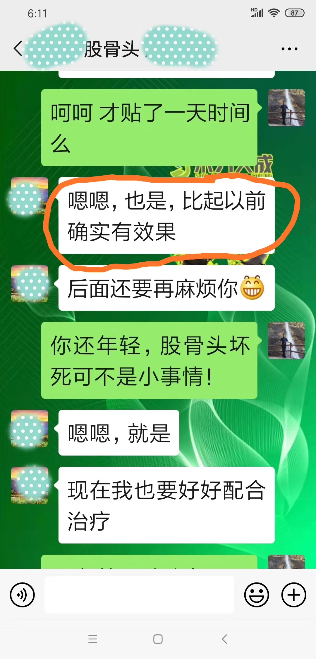 股骨头坏死反馈 小伙子神吸收,才贴了一天就感觉有效果