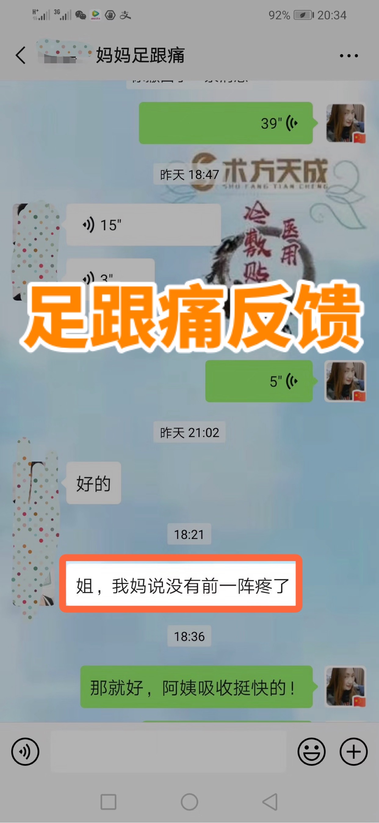 足跟痛反馈 嫂子足跟骨刺,敷贴术方天成第二天就感觉减轻了