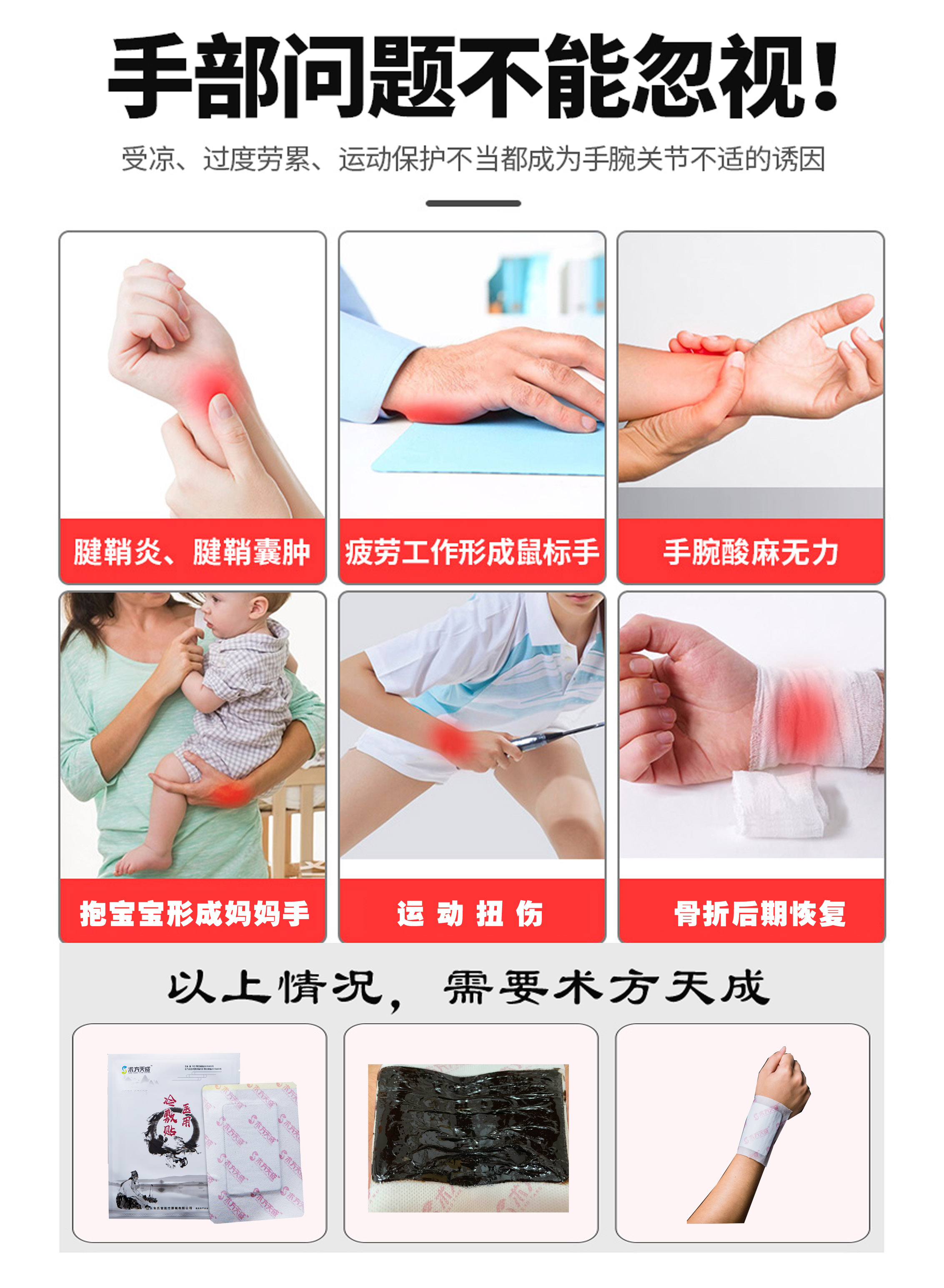 腱鞘炎反馈 之前疼的睡不着觉,贴了咱的术方天成,不疼了,见效非常快! 术方天成提质不加价,尺寸更大、厚度增加,效果自然更好!