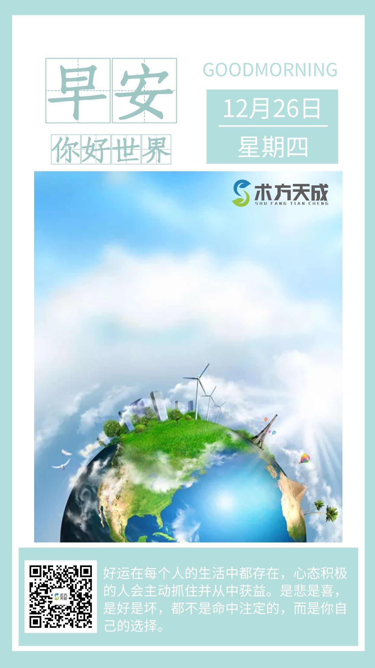 好运在每个人的生活中都存在 心态积极的人会主动抓住并从中获益 是悲是喜 是好是坏 都不是命中注定的 而是你自己的选择 早安~