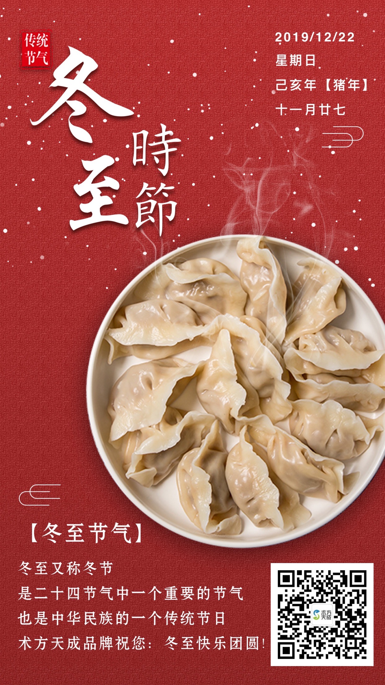 冬至已至 天至最寒昼最短 吃饱穿暖不觉寒 术方天成愿您冬至:安