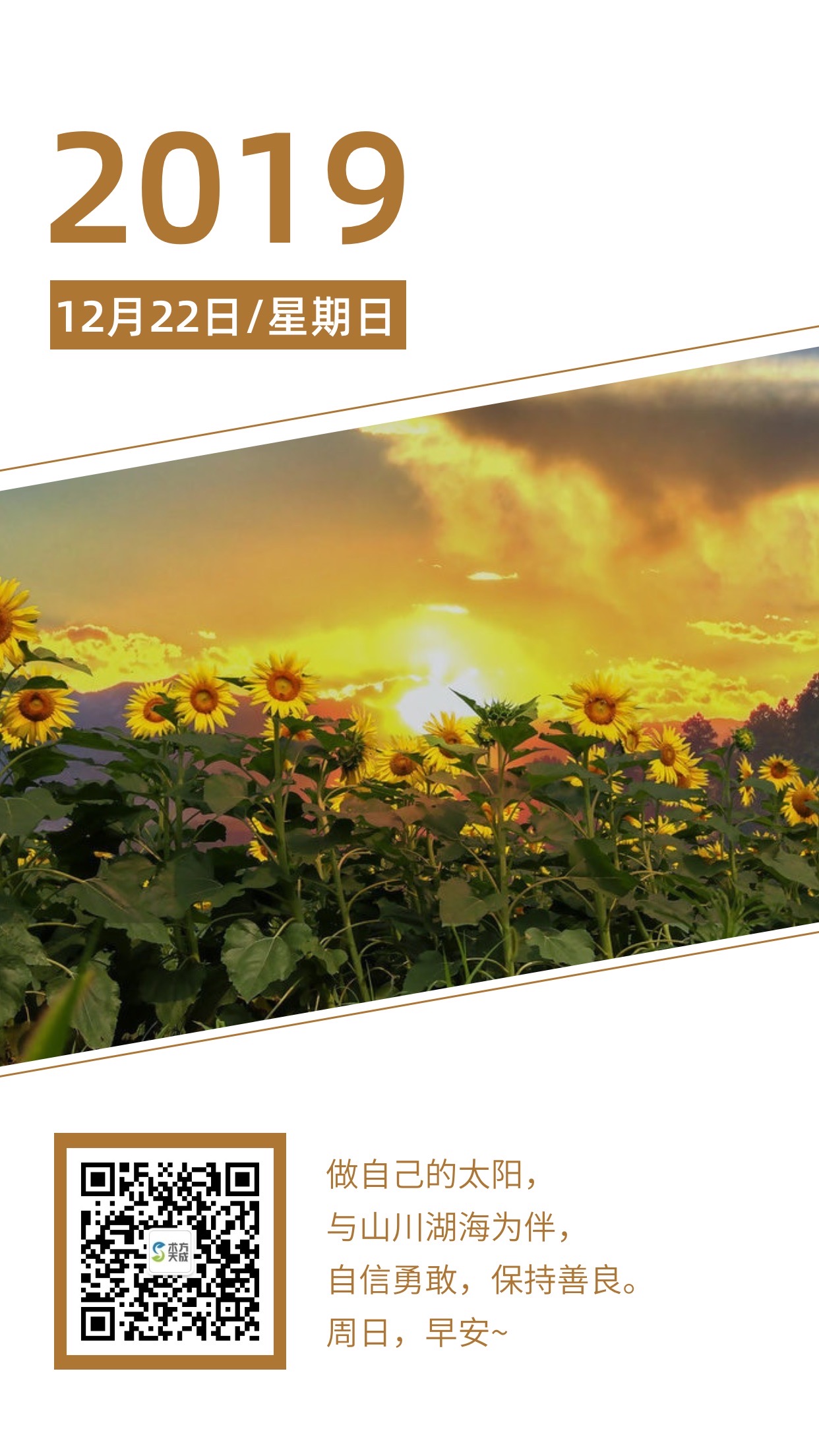 做自己的太阳, 与山川湖海为伴, 自信勇敢,保持善良。 周日早安~