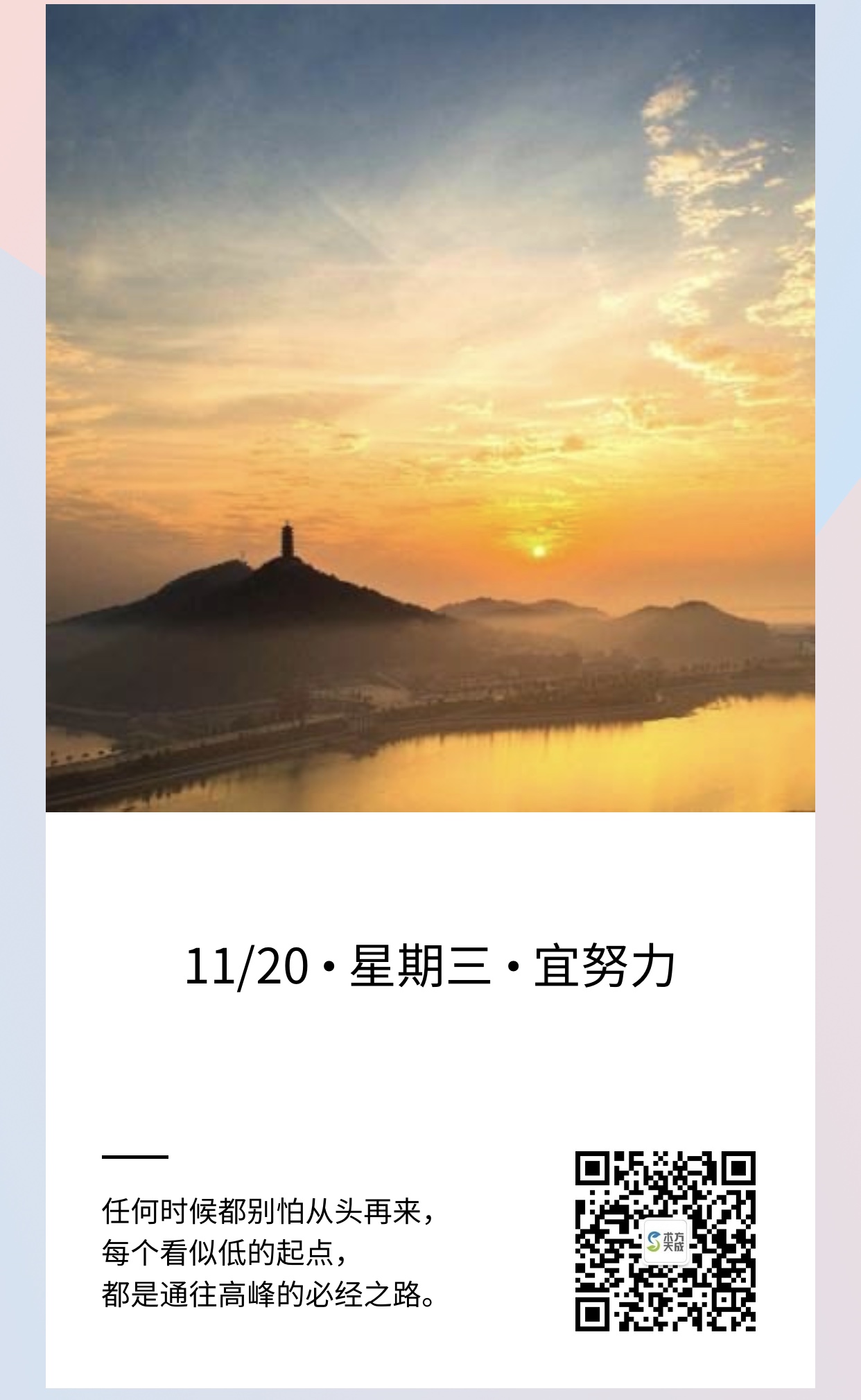 任何时候都别怕从头再来,每个看似低的起点,都是通往高峰的必经之路。早安~