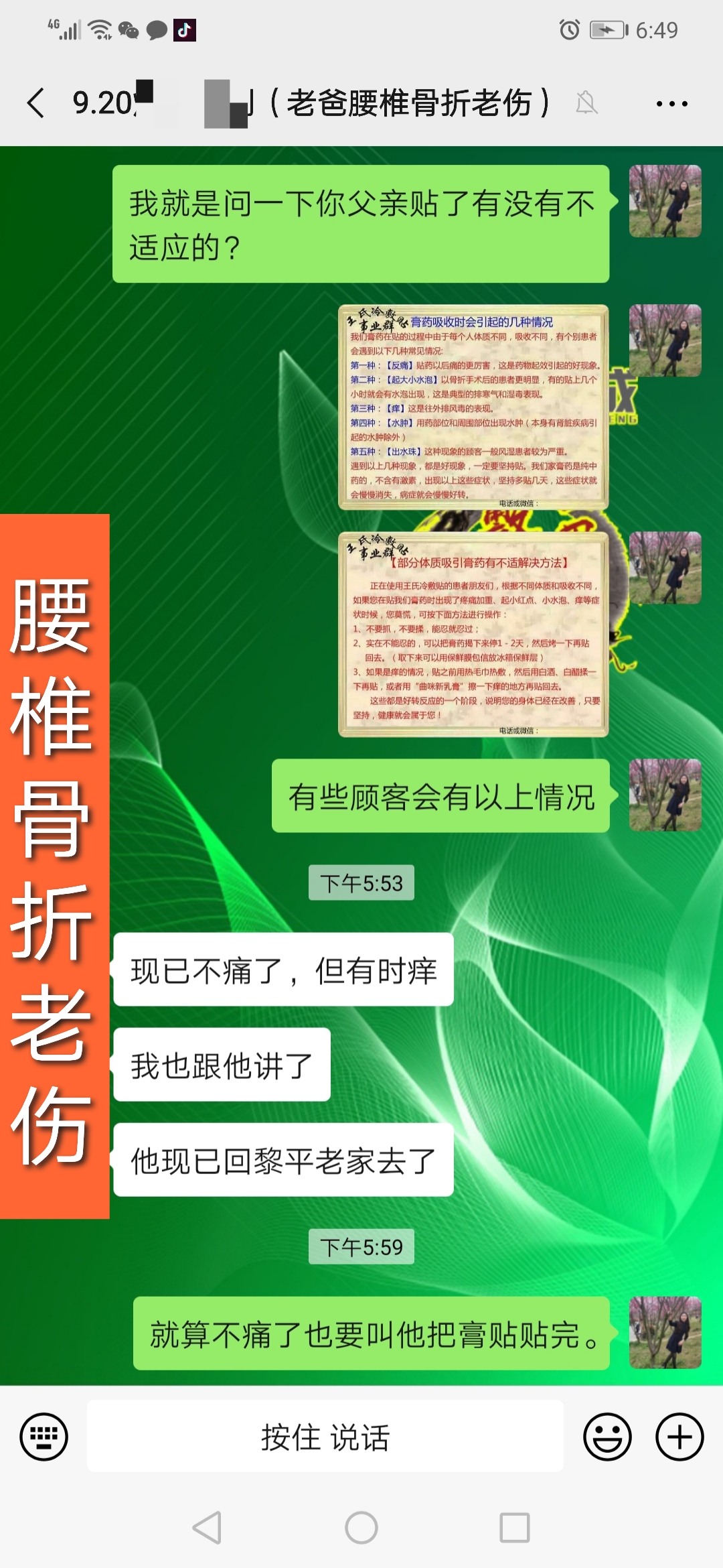 腰椎骨折老伤反馈 孝顺的儿子买给父亲用,贴的过程偶尔出现排毒现象,现在已经不痛了