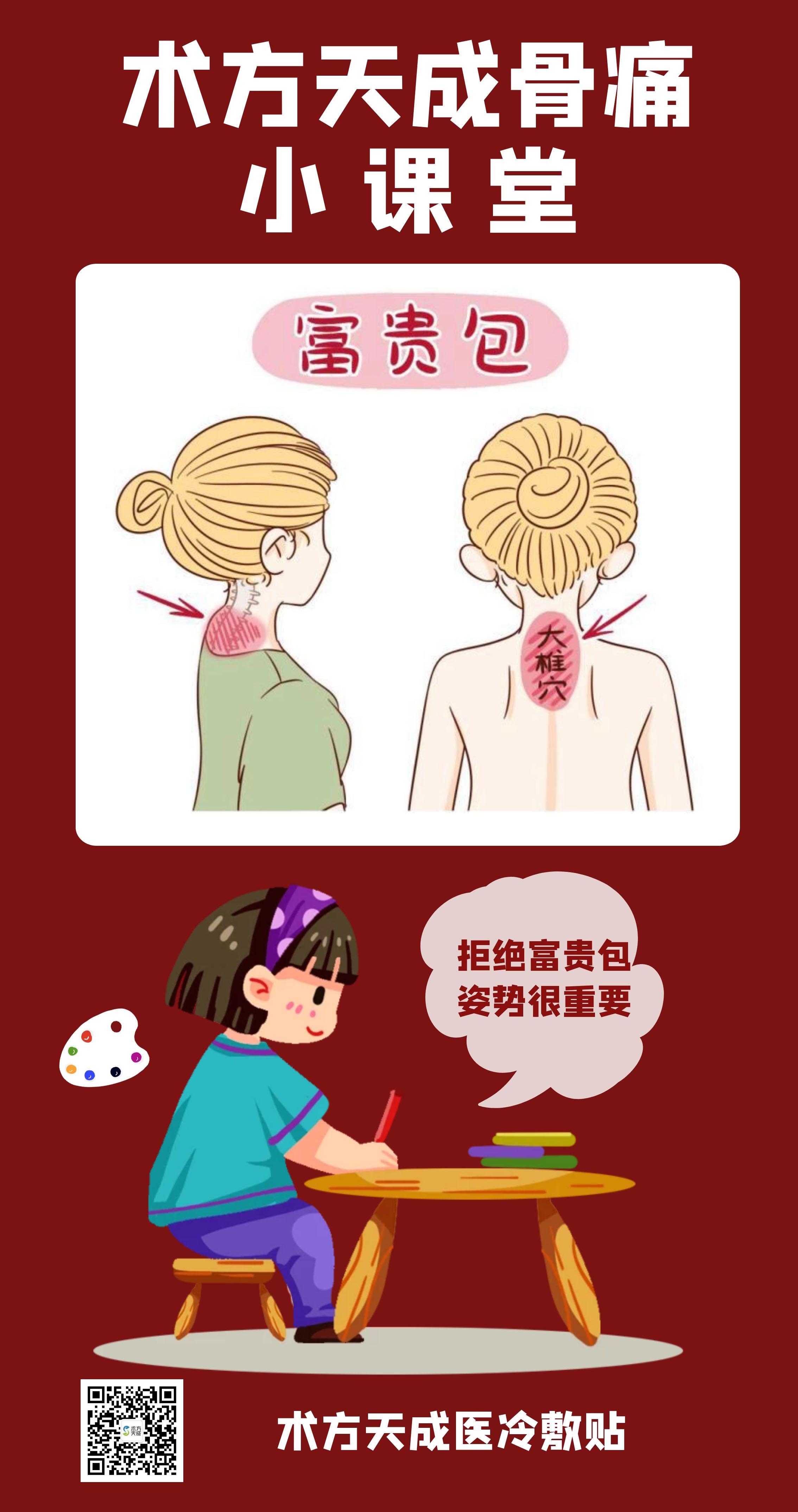 起包位置大椎穴 大椎不通堵经络 “富贵包”指的是在后背上部颈胸交界处,即第七颈椎和第一胸椎处凸出的硬包块,起包的位置在大椎穴,这里好比人体经络气血通行的十字路口,有着承上启下的作用。大椎不通,会导致气血不能上行于头部,从而引起头晕、头痛、失眠、健忘等问题。